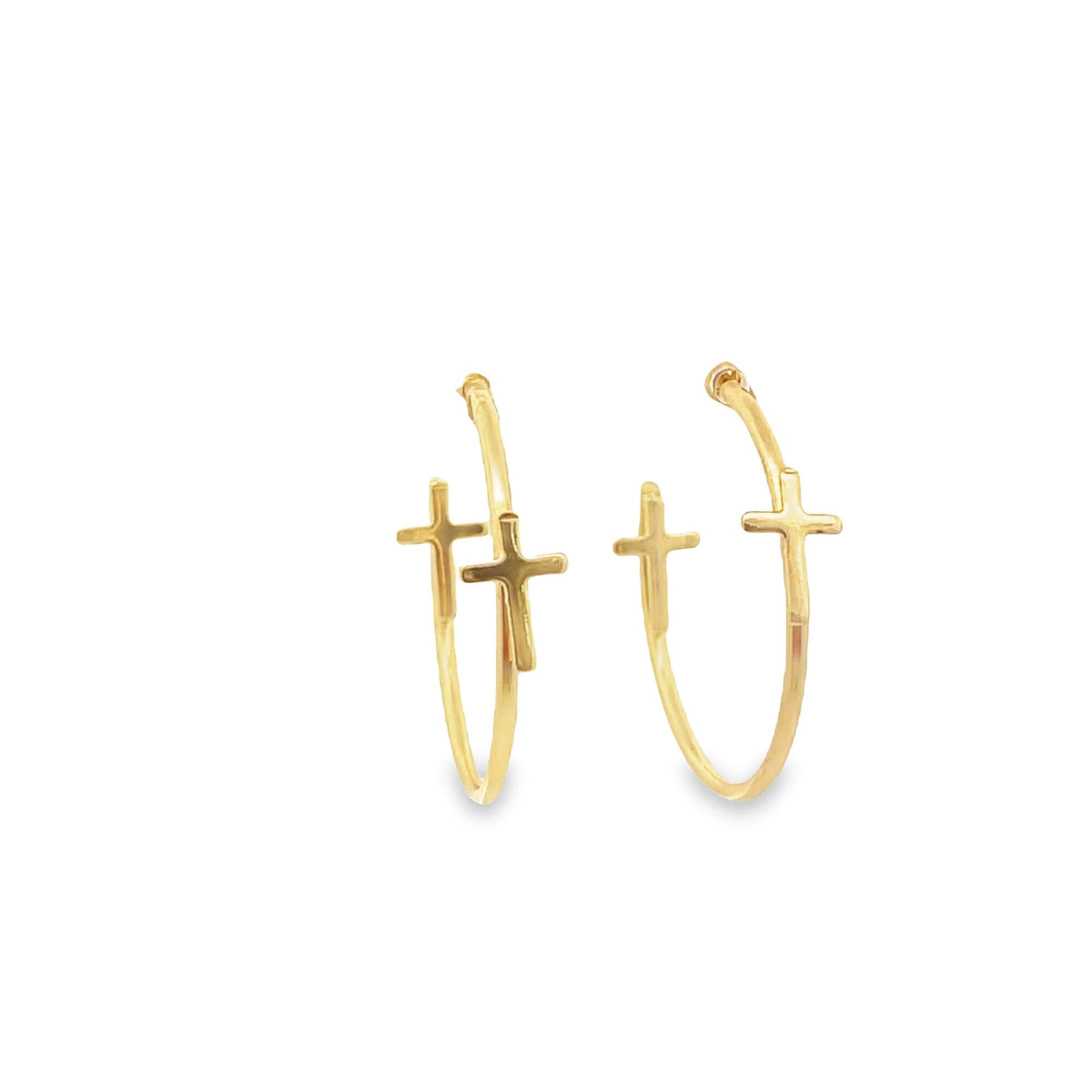 18K Gold Filled - Plain Simple Cross Merged Hoop Earrings