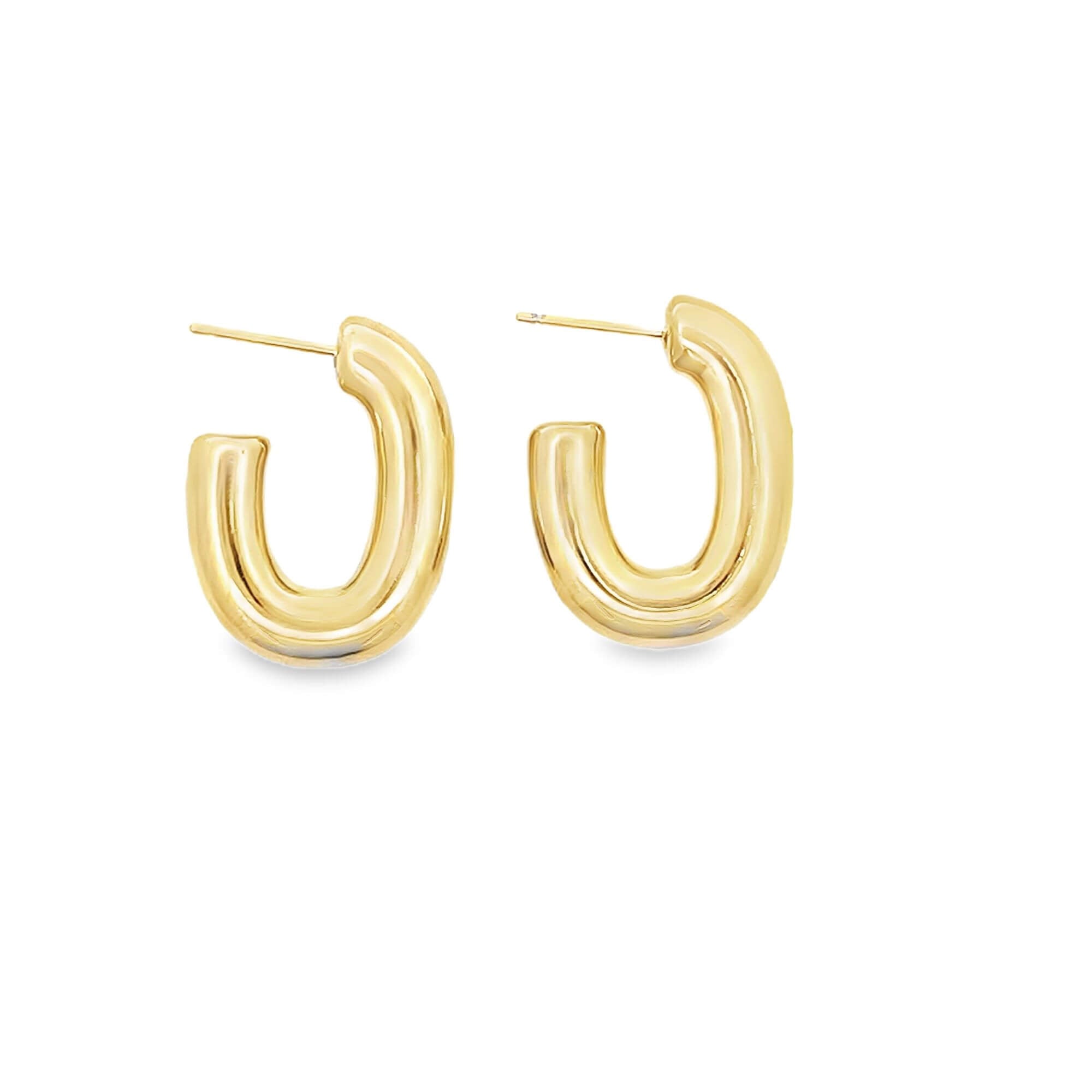 Experience timeless elegance with our Small Thick Oval Hoops. The sleek oval design adds a touch of sophistication to any outfit, while the thick construction ensures durability and longevity. Elevate your style with these must-have hoops.