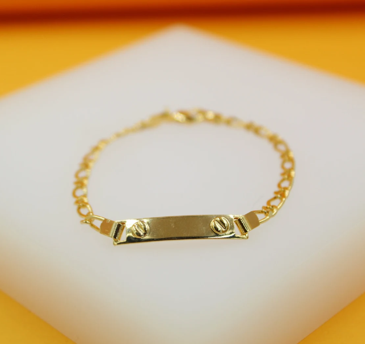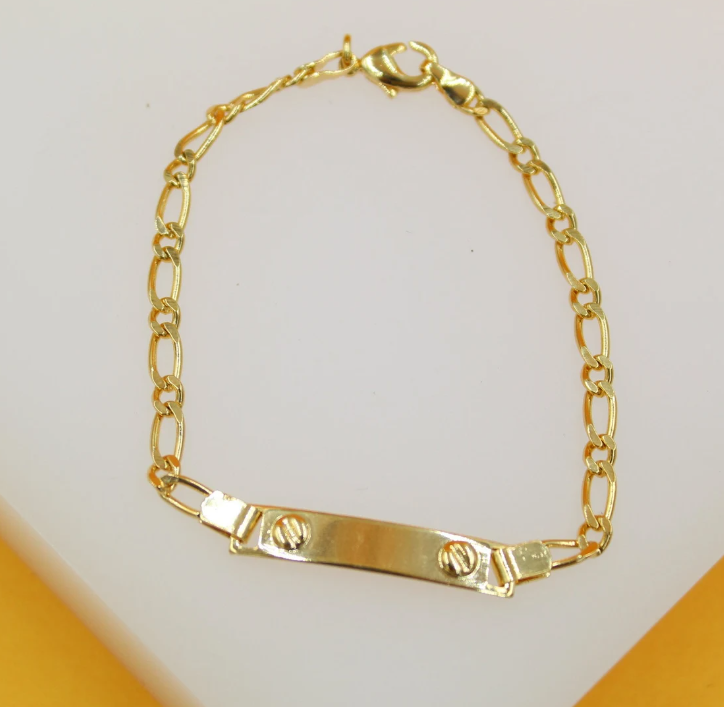 Gold Filled 4mm Figaro Kids Bracelet with Curved Plate (XX15)