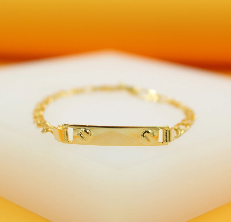 Invest in a timeless piece for your child with our Gold Filled 4mm Figaro Kids Bracelet. Made with durable materials and featuring a stylish curved plate, this bracelet is perfect for everyday wear. Give your child the gift of both fashion and quality.