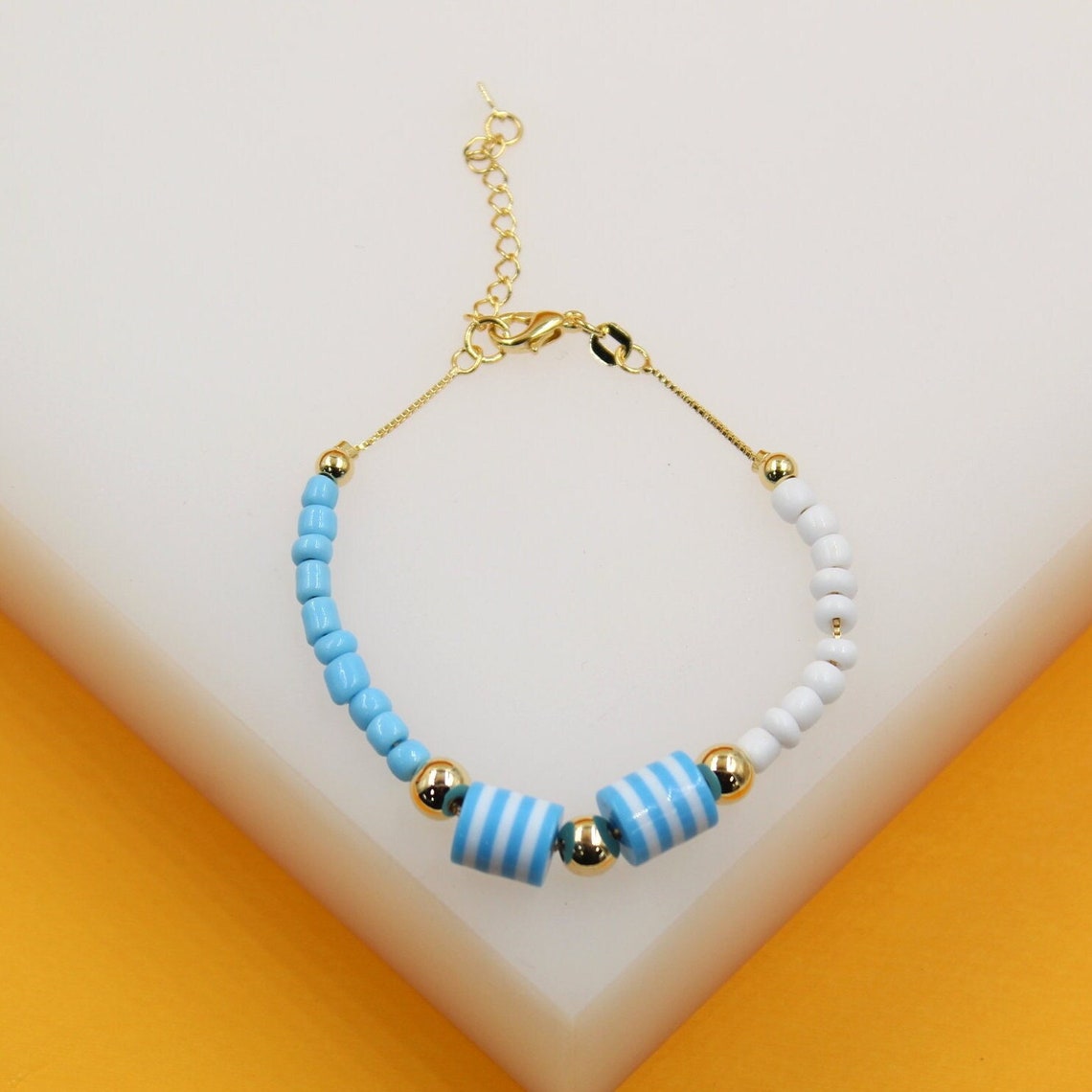 Gold Filled Blue Beaded Chain Kids Bracelet (I138)