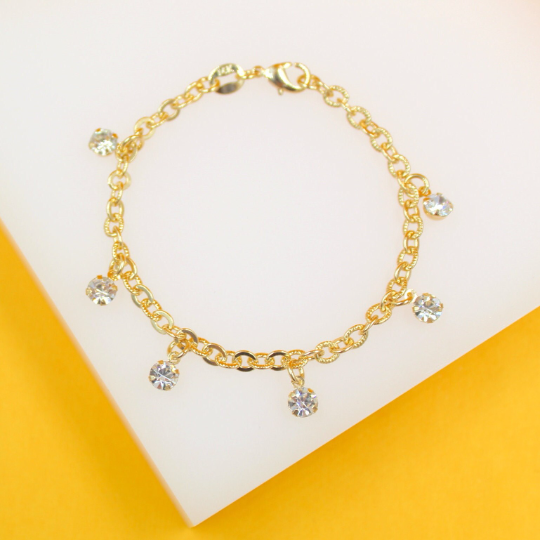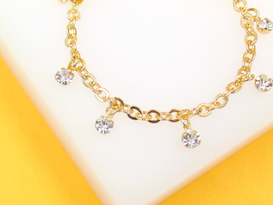 Add some sparkle to your little one's wrist with our Gold Filled CZ Rolo Kids Bracelet. Featuring a rolo chain design and stunning cubic zirconia stones, this bracelet is the perfect accessory for any occasion. Let them shine like a star with this charming bracelet!
