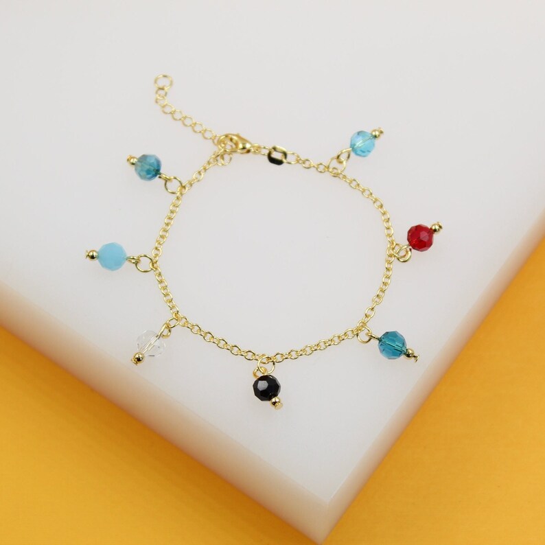 Take your wrist game to the next level with our Gold Filled dangle Colorful Bead Charm Kids Bracelet (I302)! Made with high quality materials, this bracelet features a bold design with colorful bead charms that are sure to add a touch of adventure to any outfit. Dare to stand out and rock this bracelet today!