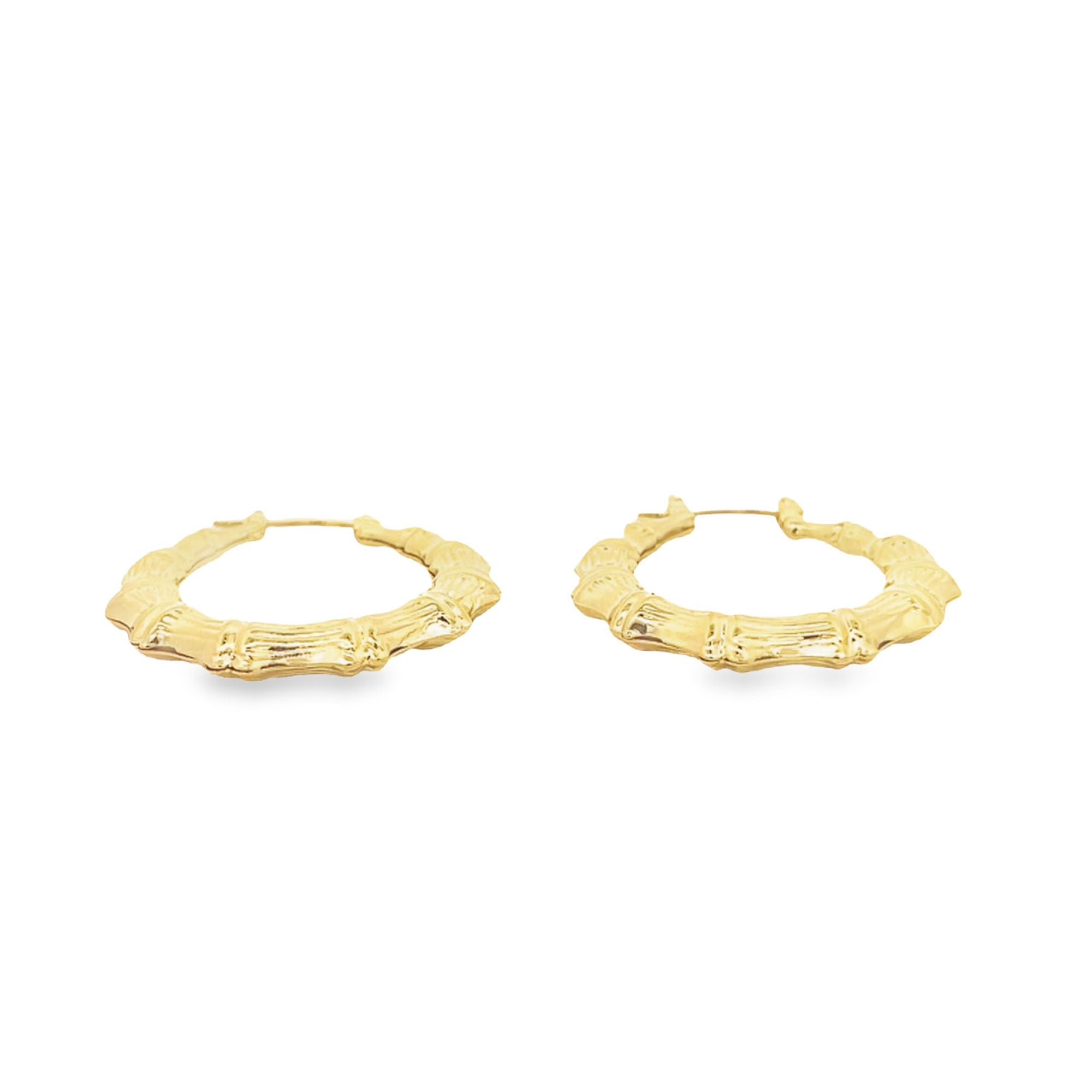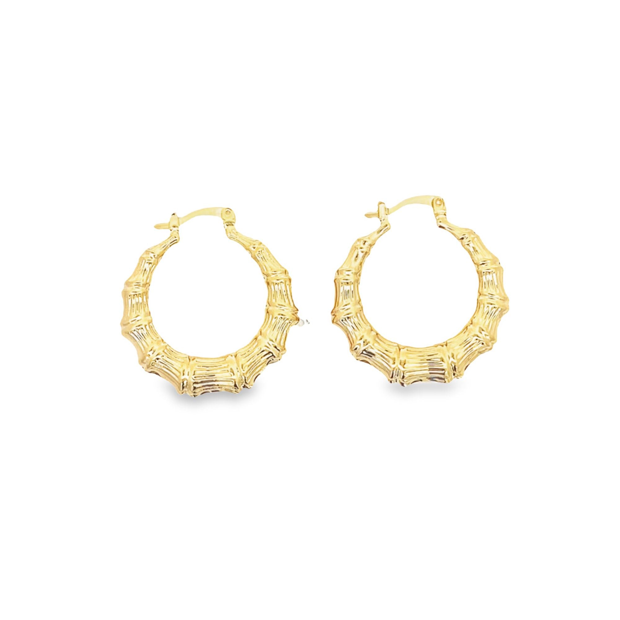 18K Gold Filled Designed Round Lever Back Bamboo Hoops (L441)
