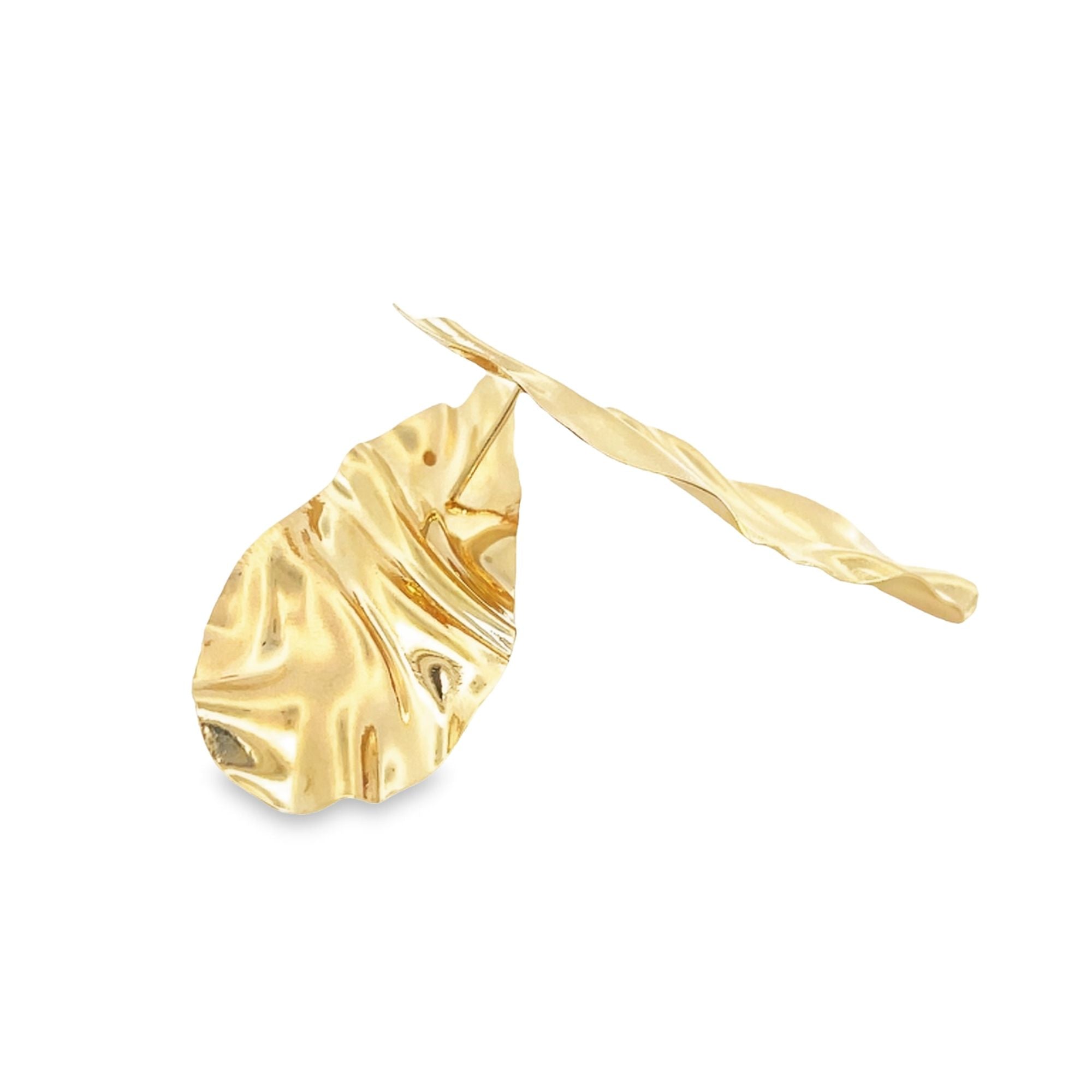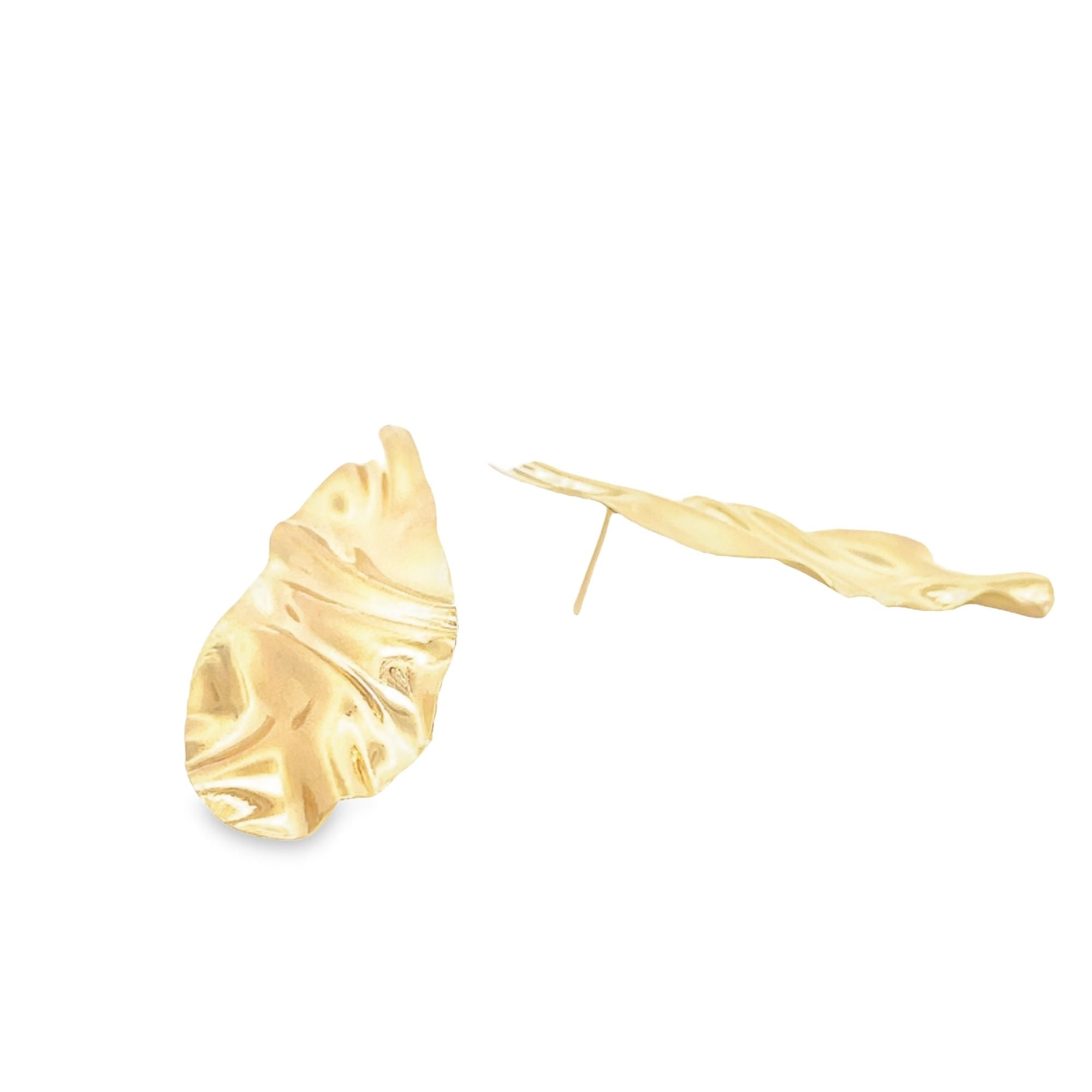 18K Gold Filled Modern Folded Ruffle Teardrop Minimalist Stud Earrings (L454)