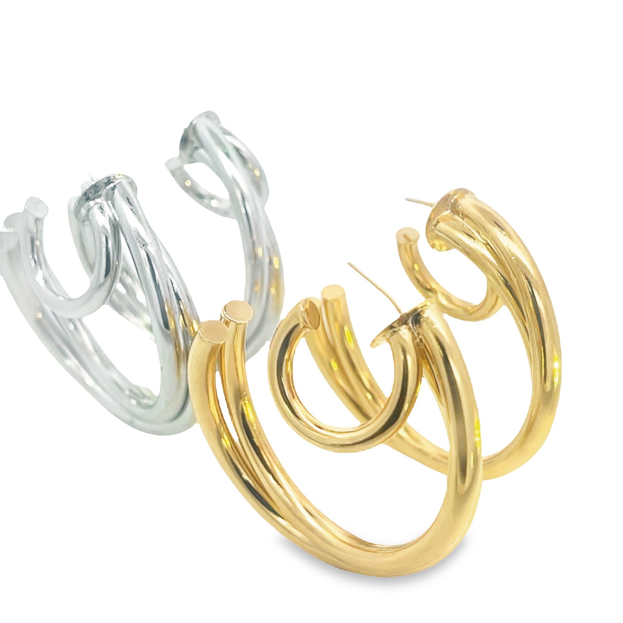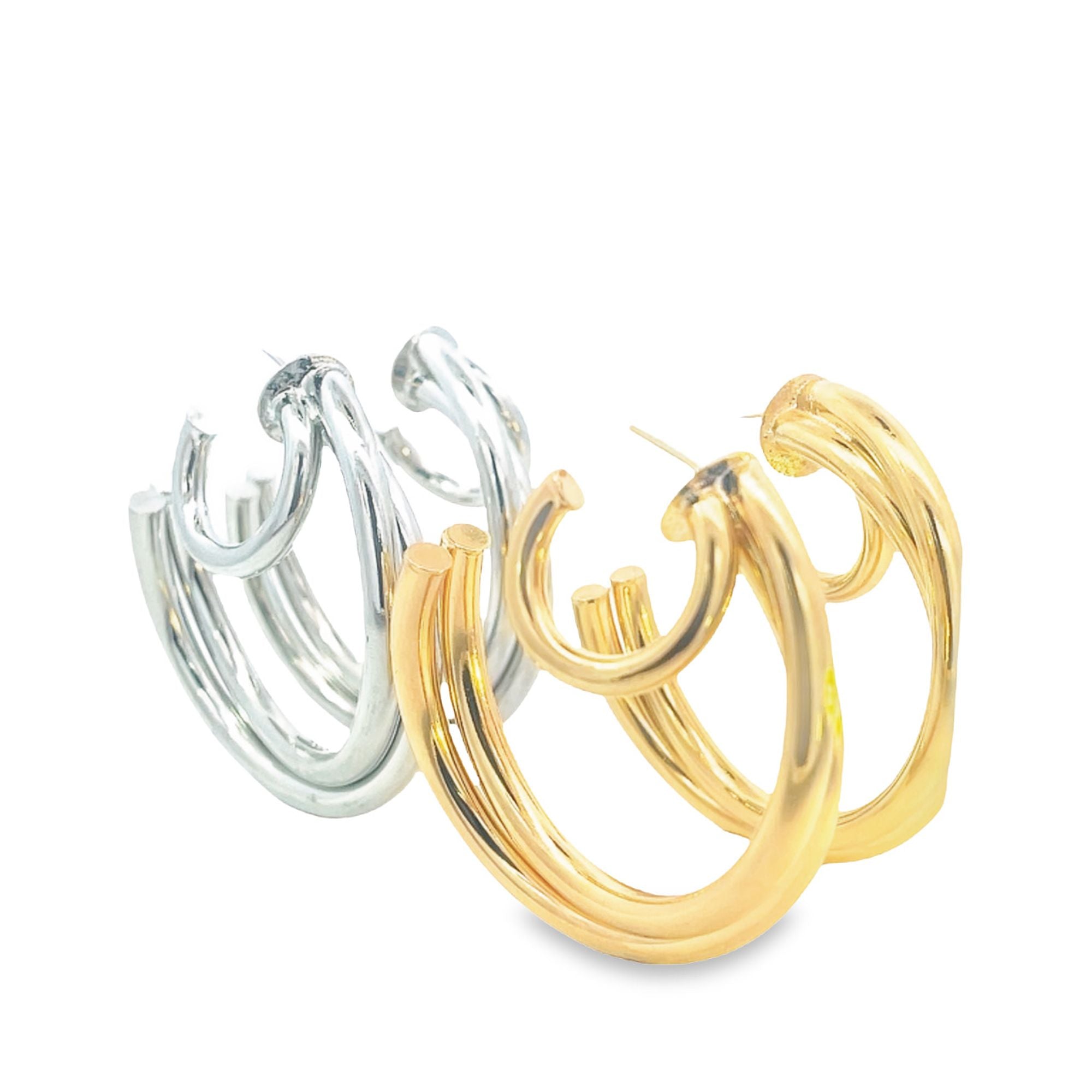 18K Gold Filled Triple Strand Hoop Earrings (K372)