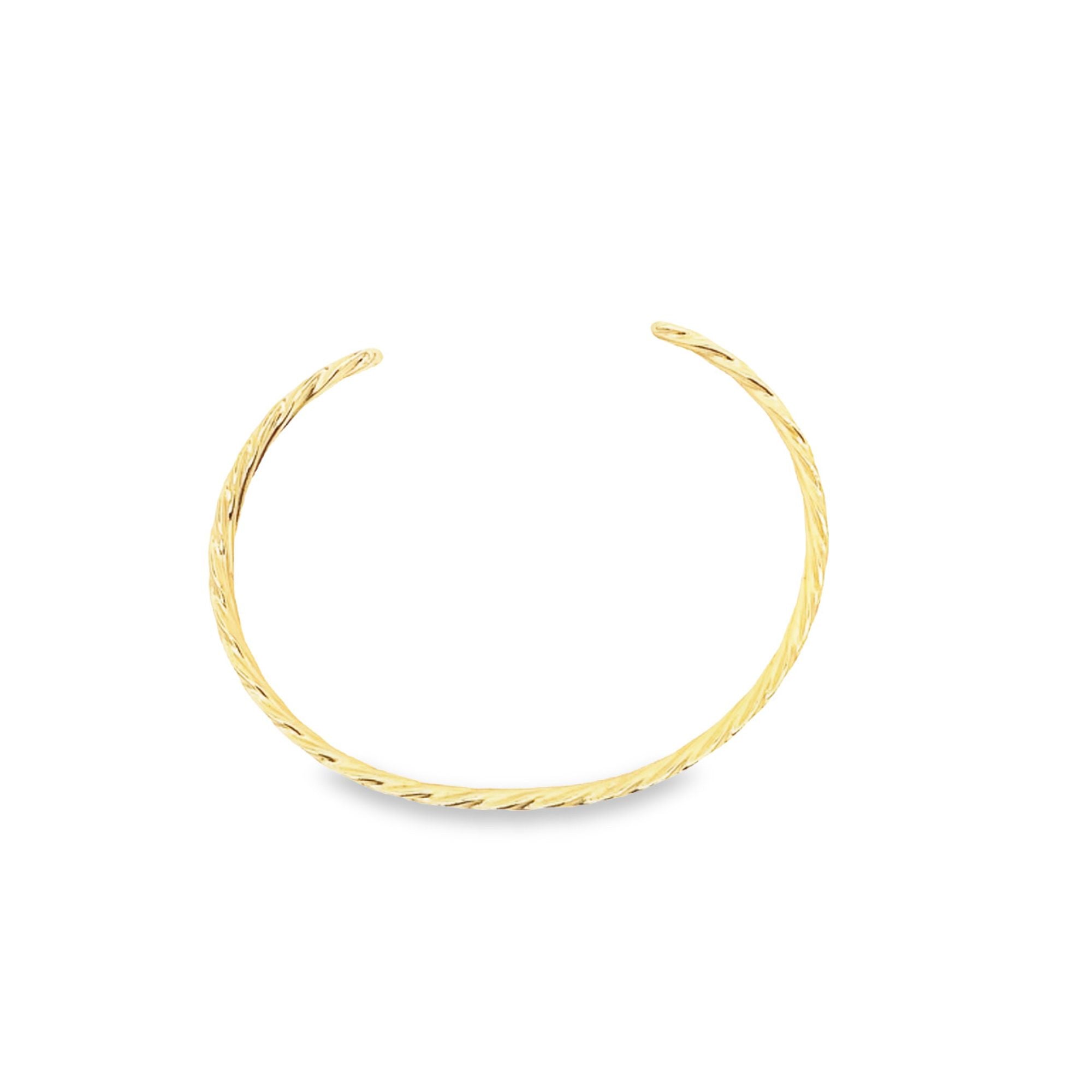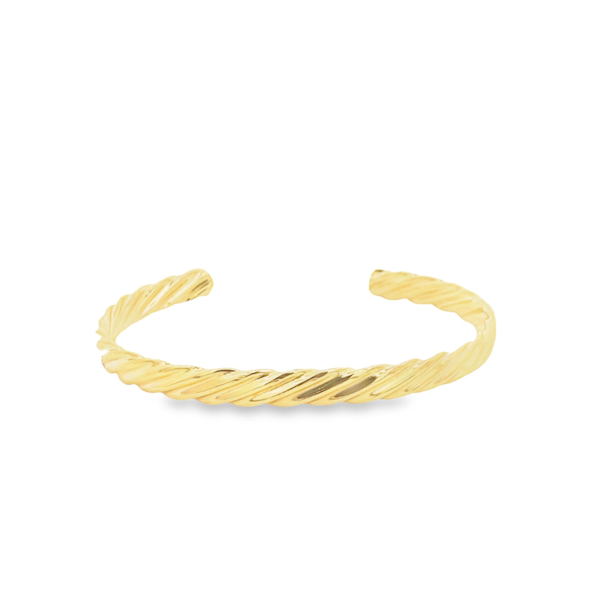 Introducing our Cuff Open Bracelet Twisted Bangle, a delicate yet bold piece for the luxurious woman. This bangle features a unique twisted design, adding an elegant touch to any outfit. The open cuff design allows for easy wear, making it the perfect accessory for any occasion. Elevate your style with this exclusive bangle.