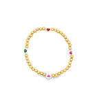 4mm Gold Bead Bracelet With Four Hearts (I50)