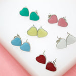 18K Gold Filled Colors Heart Stud Earrings (L44)