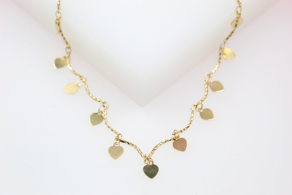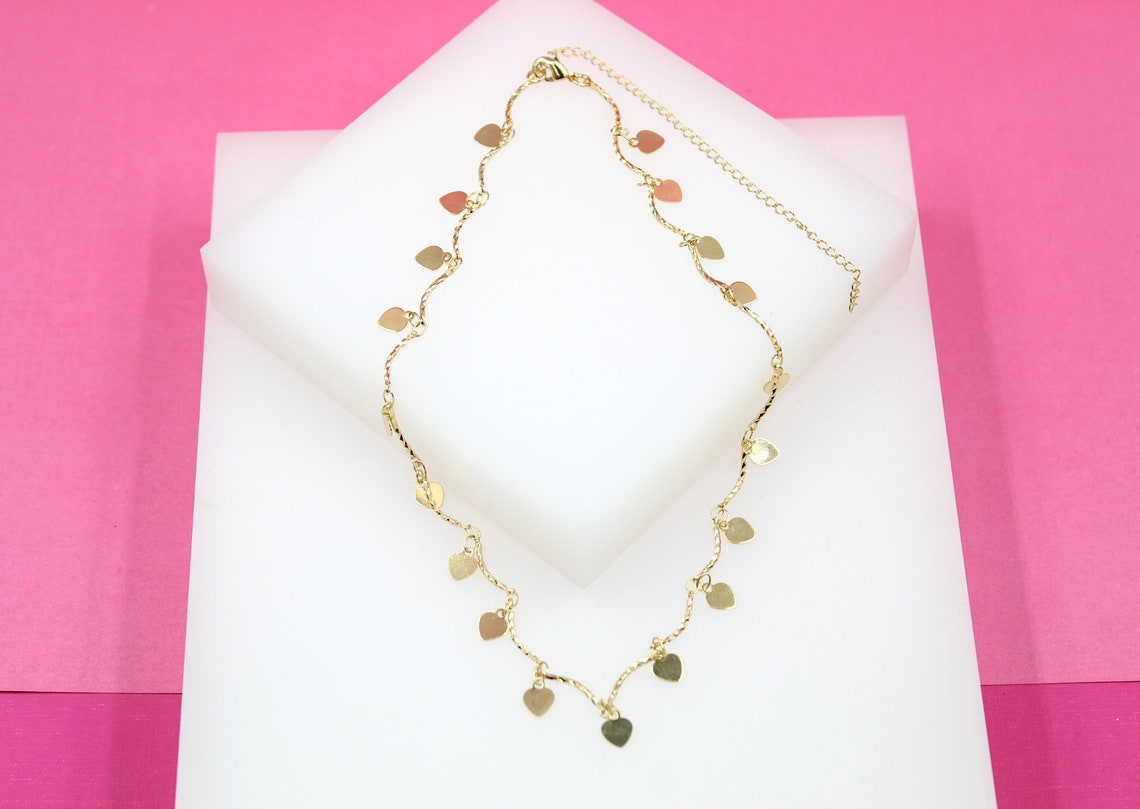 18K Gold Filled Designed Link Dangle Heart Choker Necklace (G49)