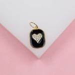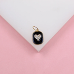 18K Gold Filled Enamel Pendant Charm With Heart Shaped Micro CZ Cubic Zirconia Stones (A237)