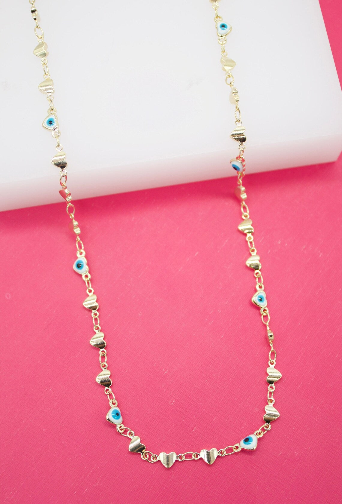 18K Gold Filled Evil Eye Necklace With Triple Hearts (G40)