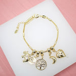 18K Gold Filled Evil Eye, Tree Of Life, Moon, Heart, Elephant, Evil Eye Charms Bracelet (I157)