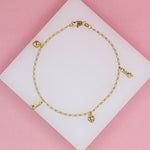 18K Gold Filled Figa Hand Hearts Dangle Charms Anklet (E118)