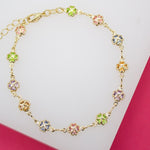 18K Gold Filled Four Leaf Clover Multi-Color CZ Charm Bracelet (I151)