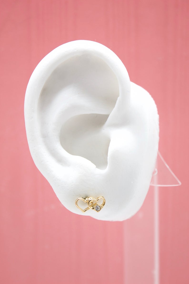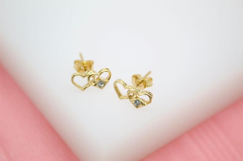 18K Gold Filled Gold Hearts Stud Earrings With A Cubic Zirconia Stone