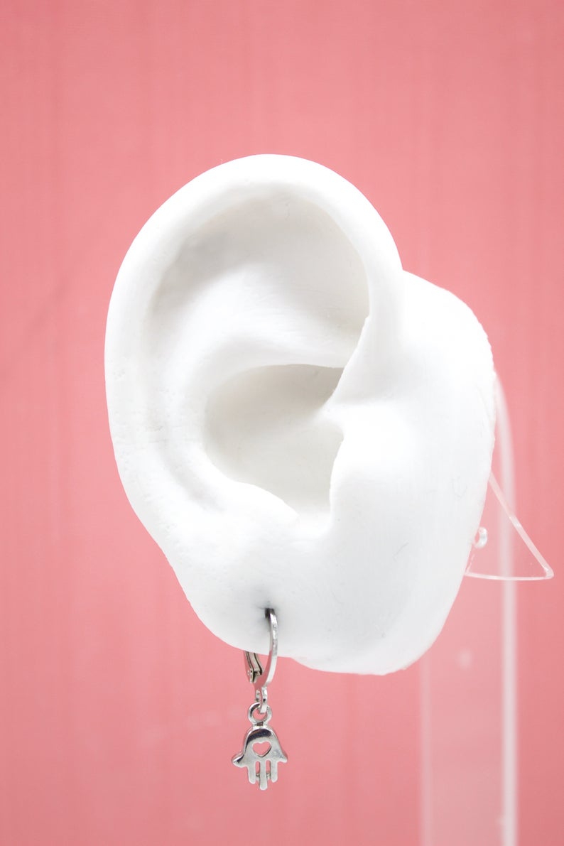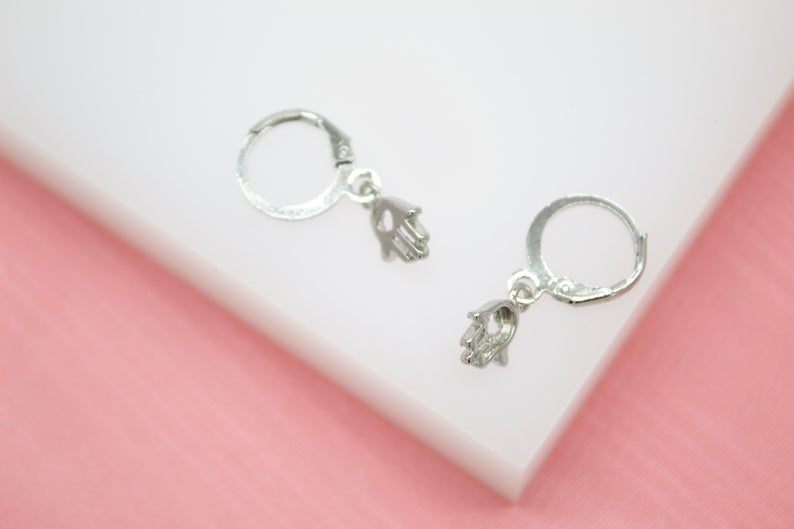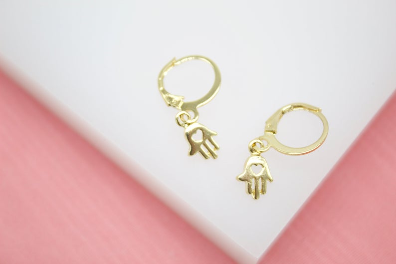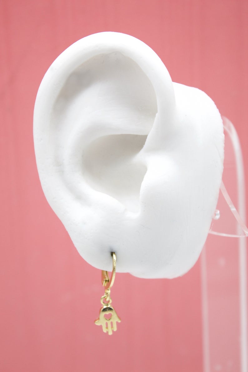 18K Gold Filled Hand Of Hamsa Heart Huggies Earrings