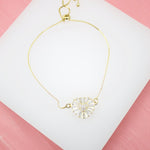 18K Gold Filled Heart Adjustable Box Chain Bracelet With Micro CZ Stones