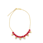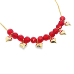 18K Gold Filled Heart Charm Anklet With Red Beads (E102)