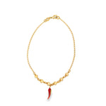 18K Gold Filled Heart Dangle Red Pepper Charm Anklet (E115)