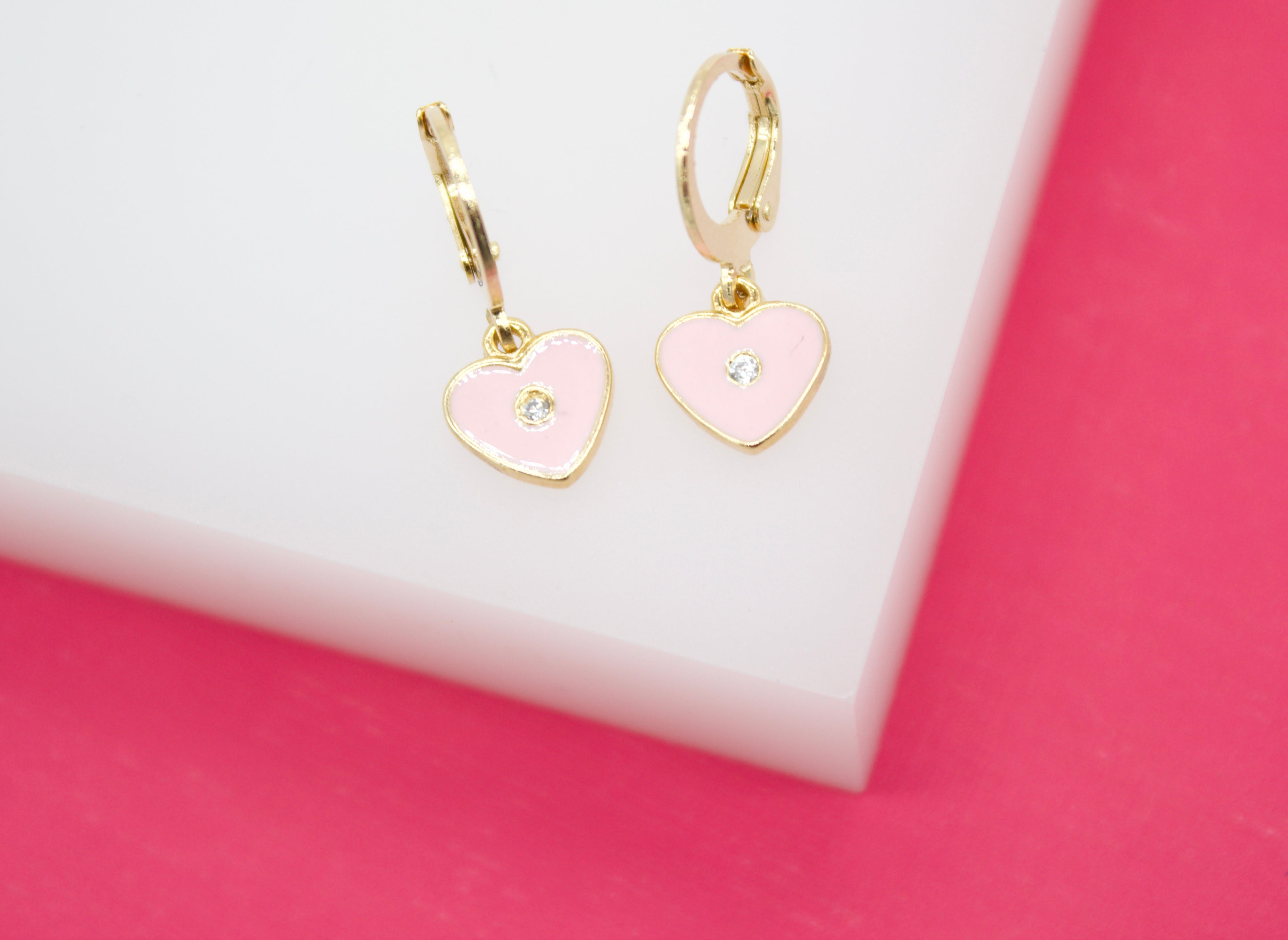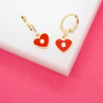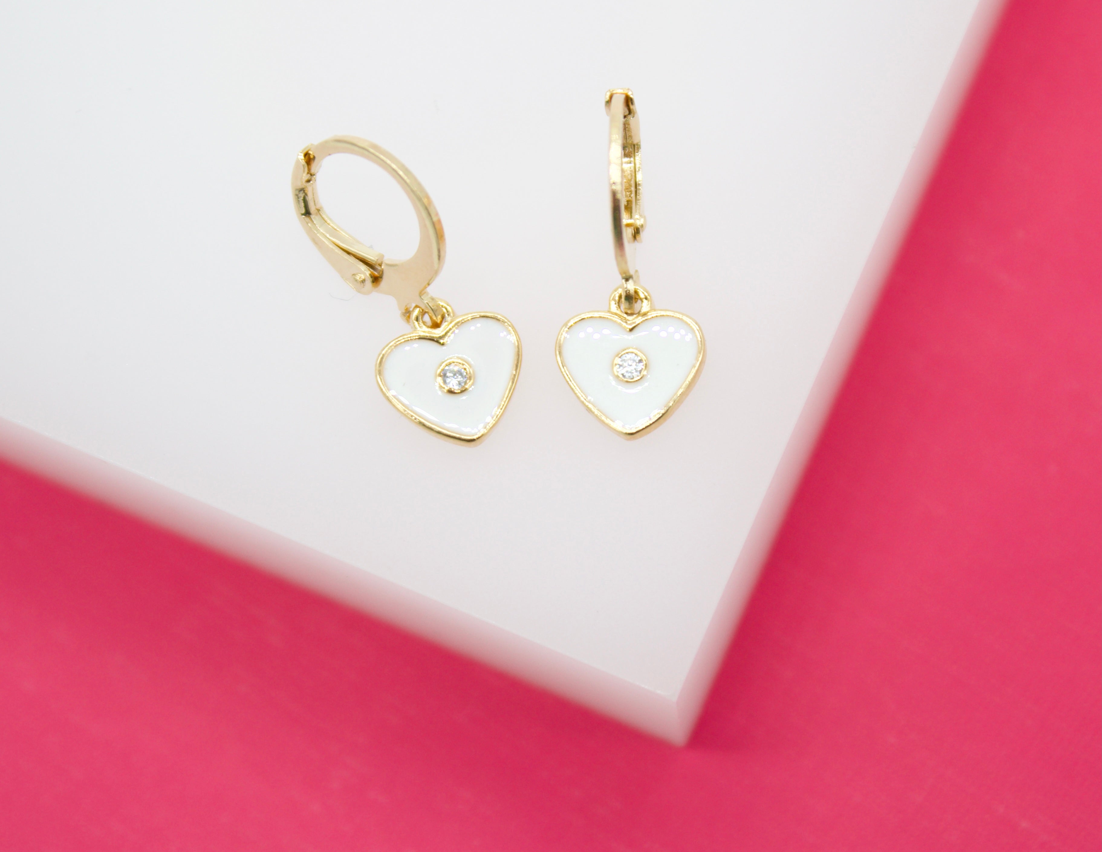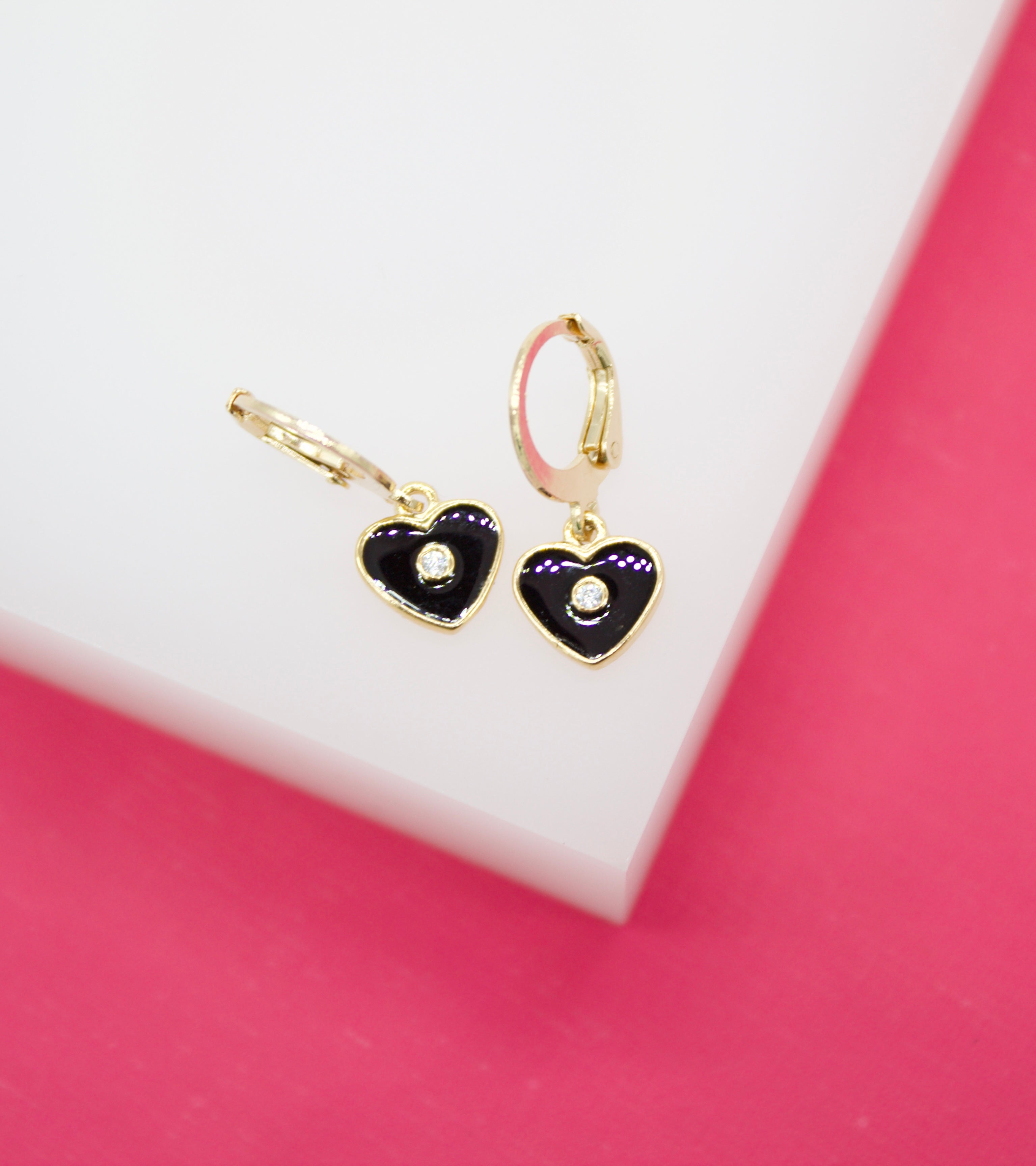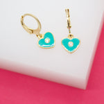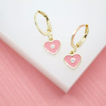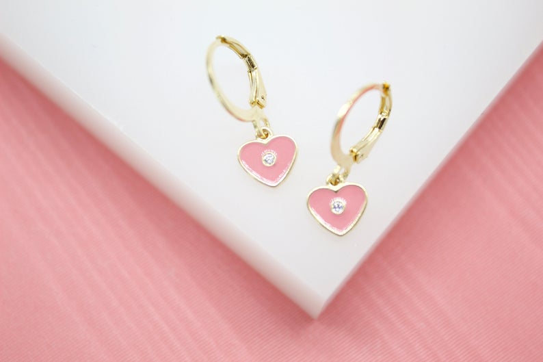 18K Gold Filled Heart Huggies Earrings With CZ Stone (L162)