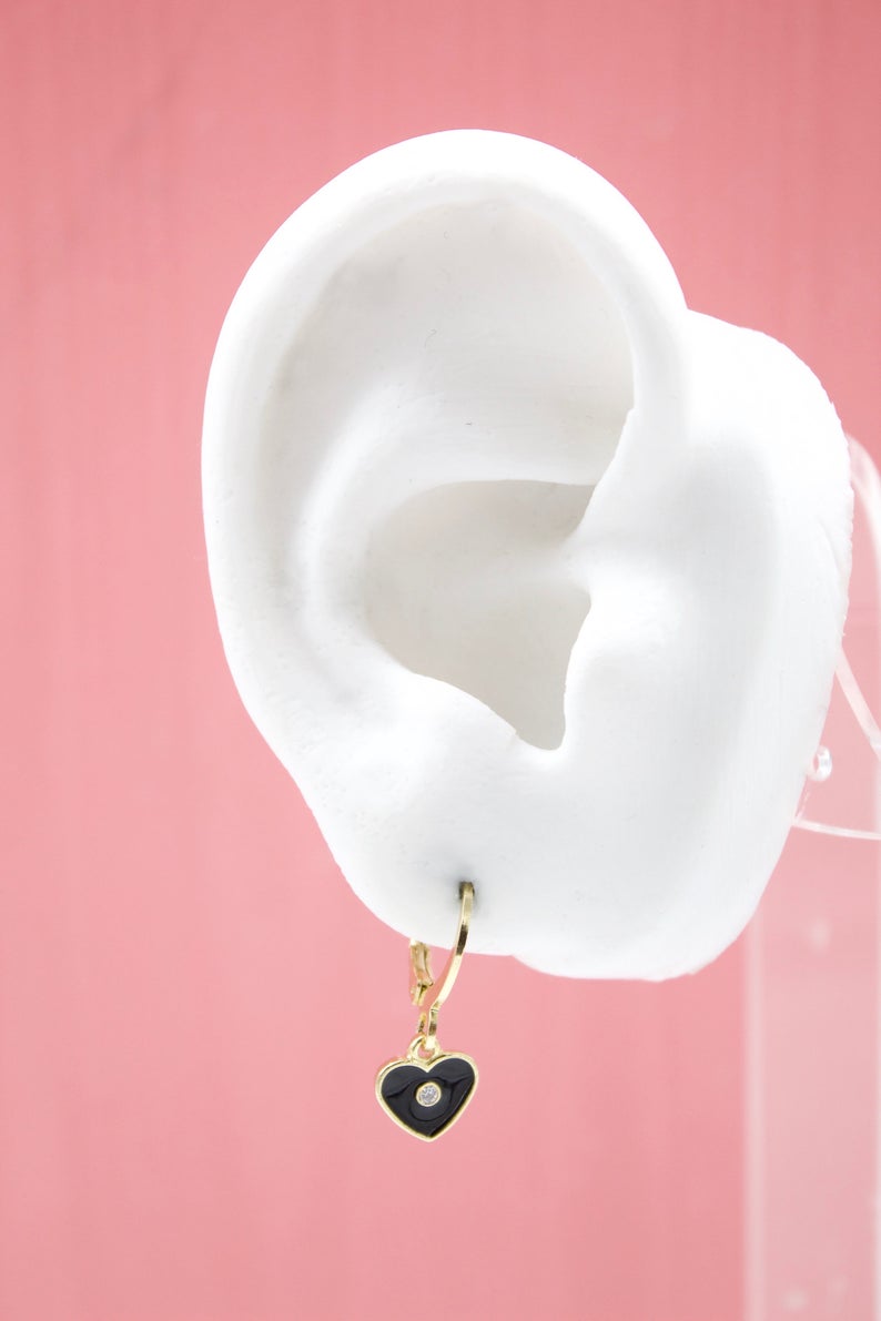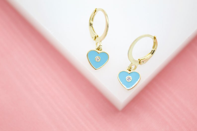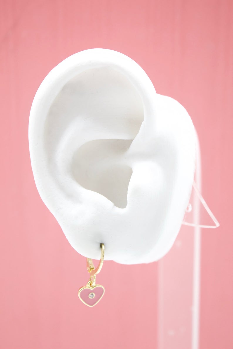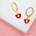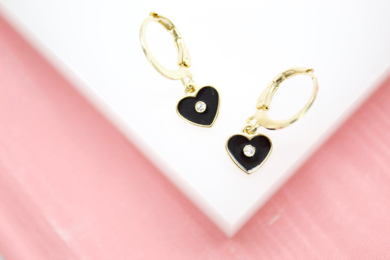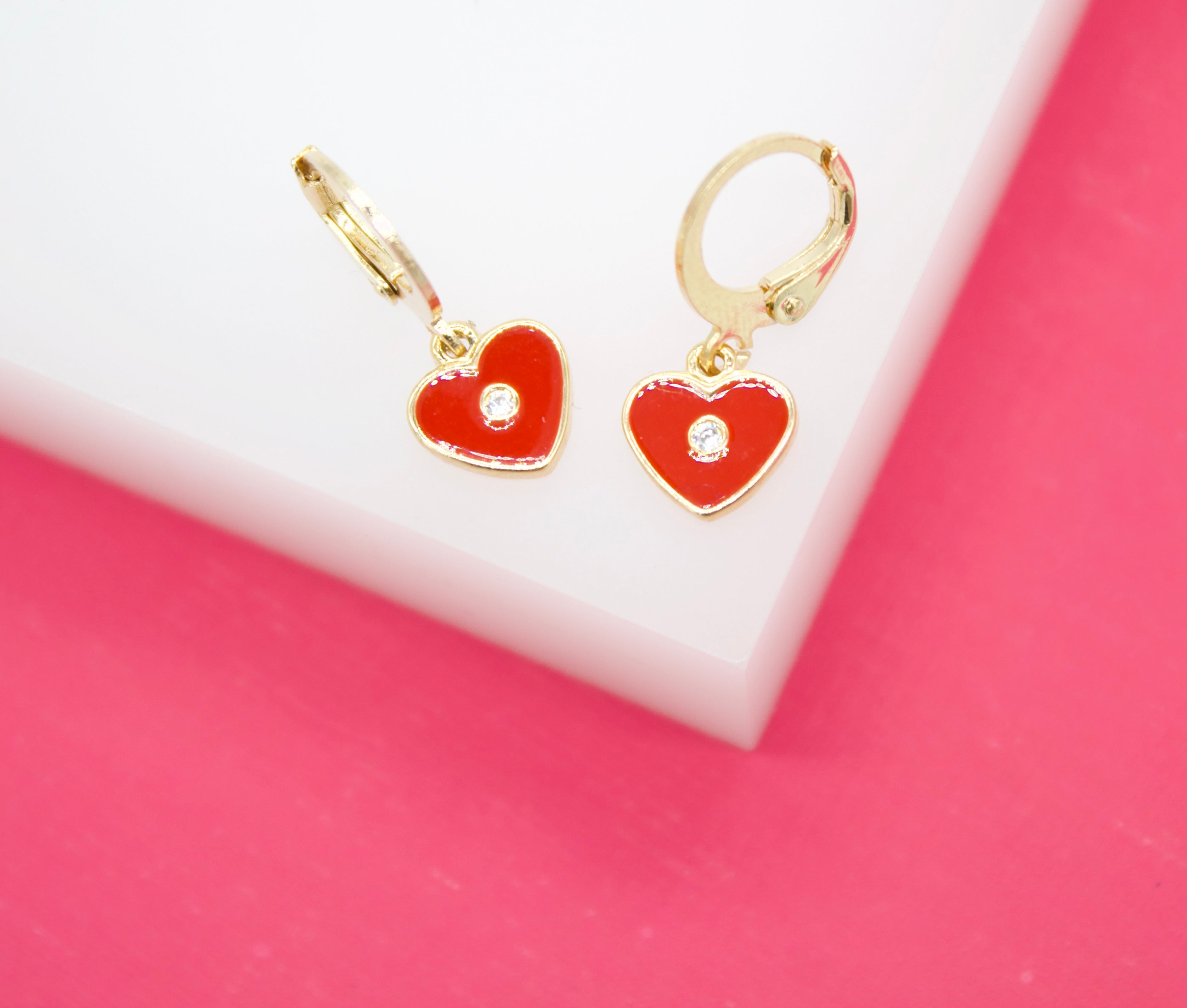 18K Gold Filled Heart Huggies Earrings With CZ Stone (L162)
