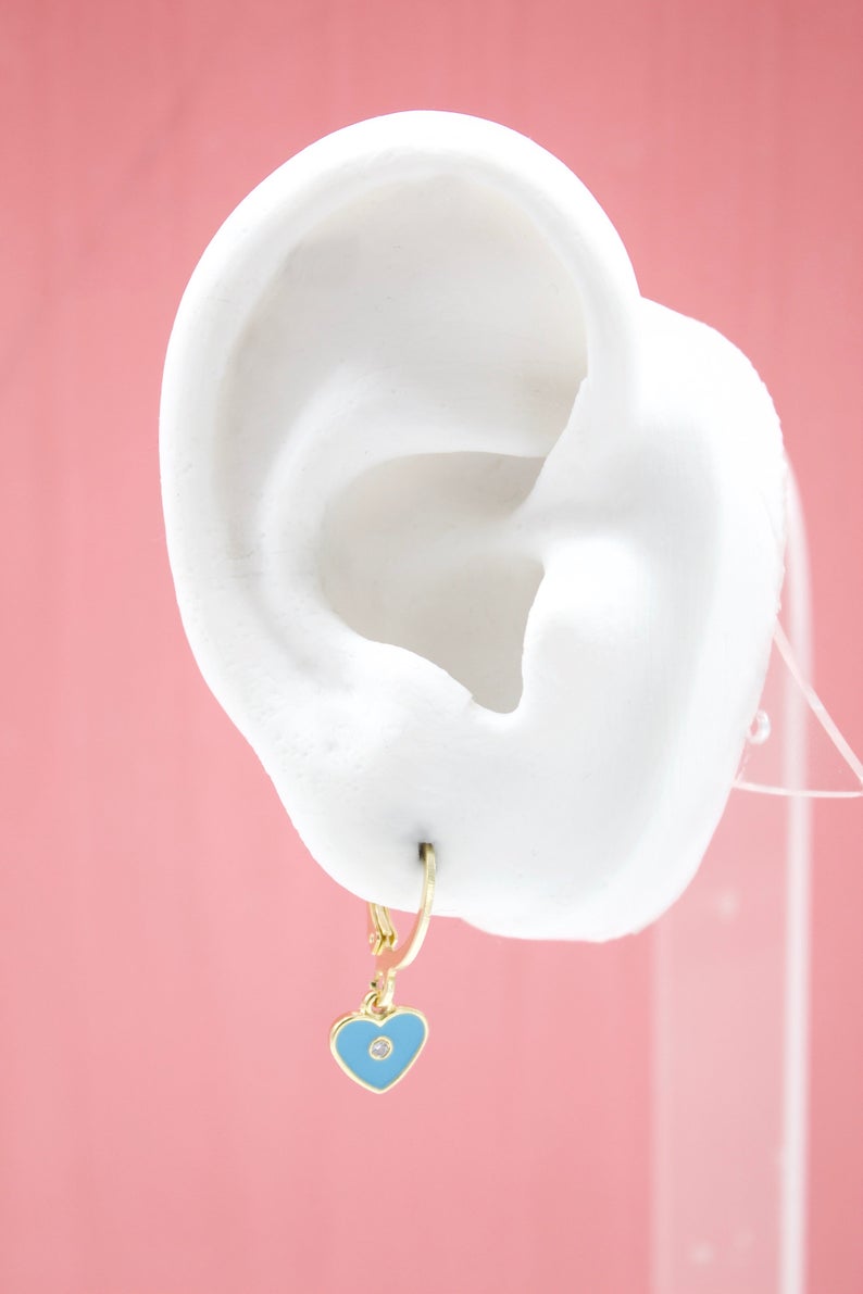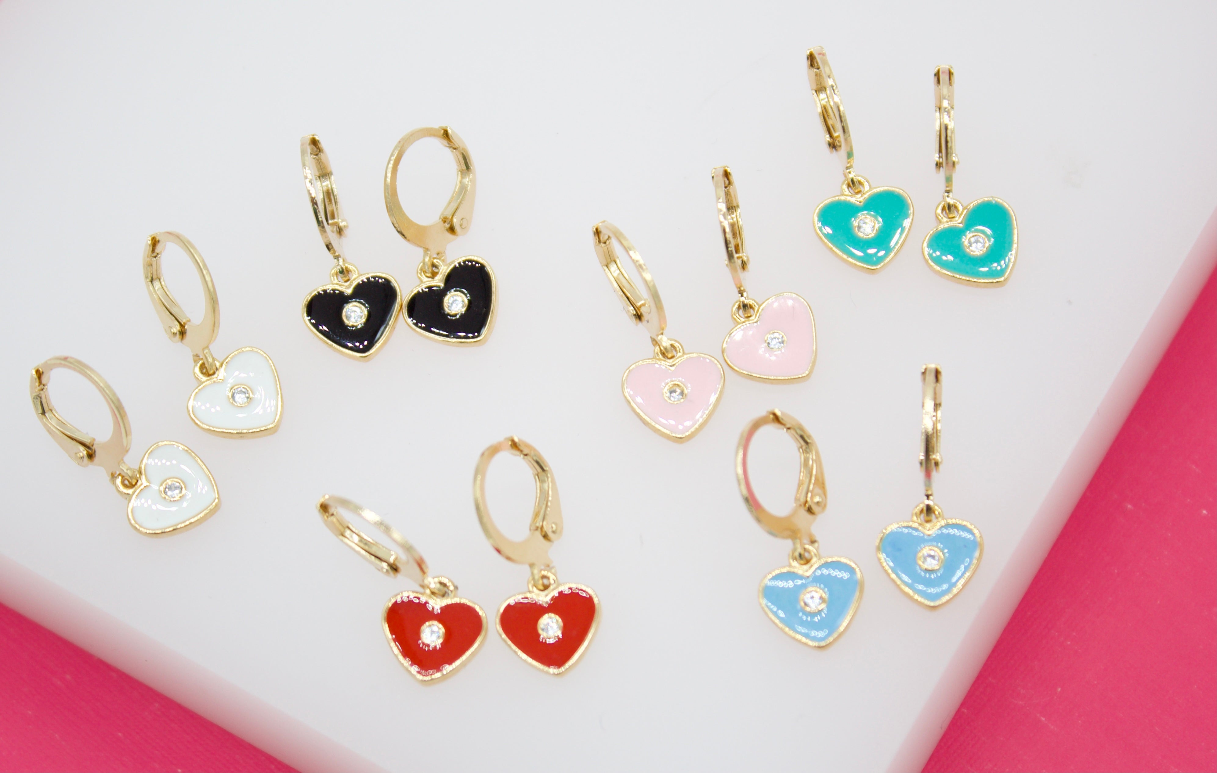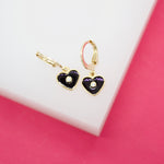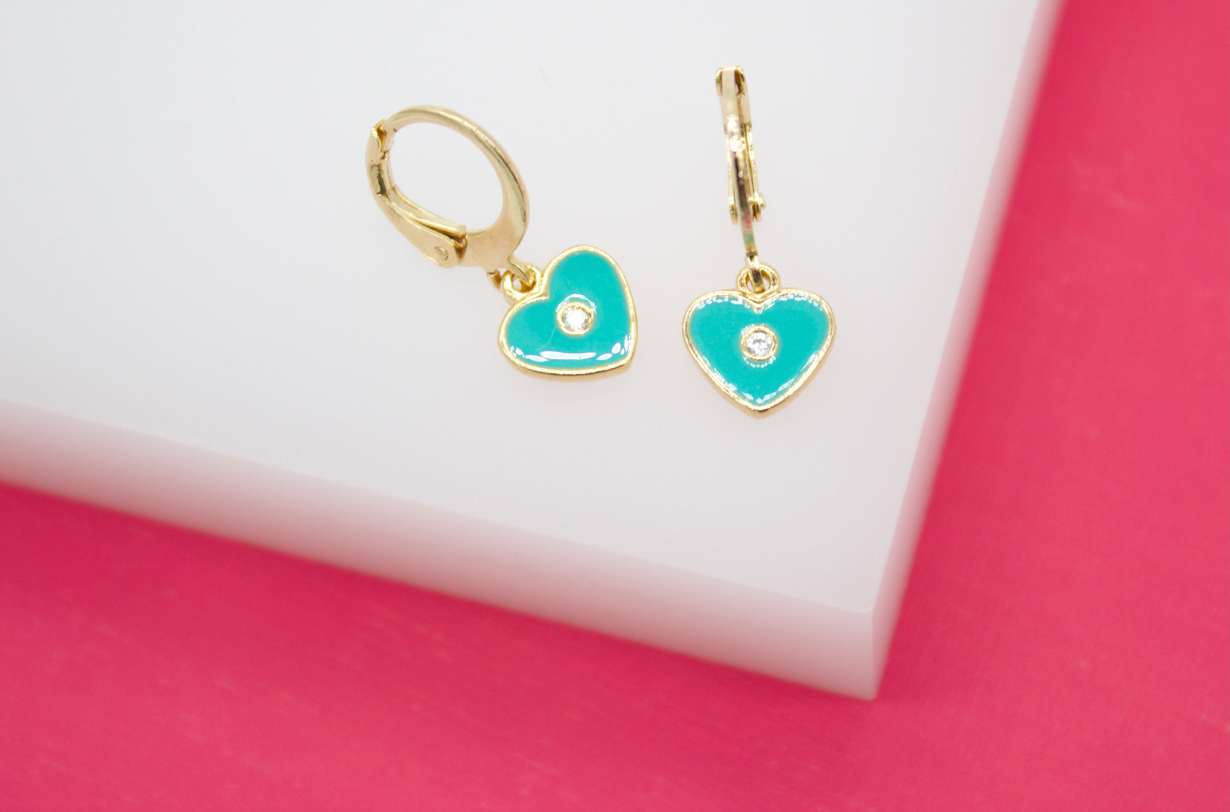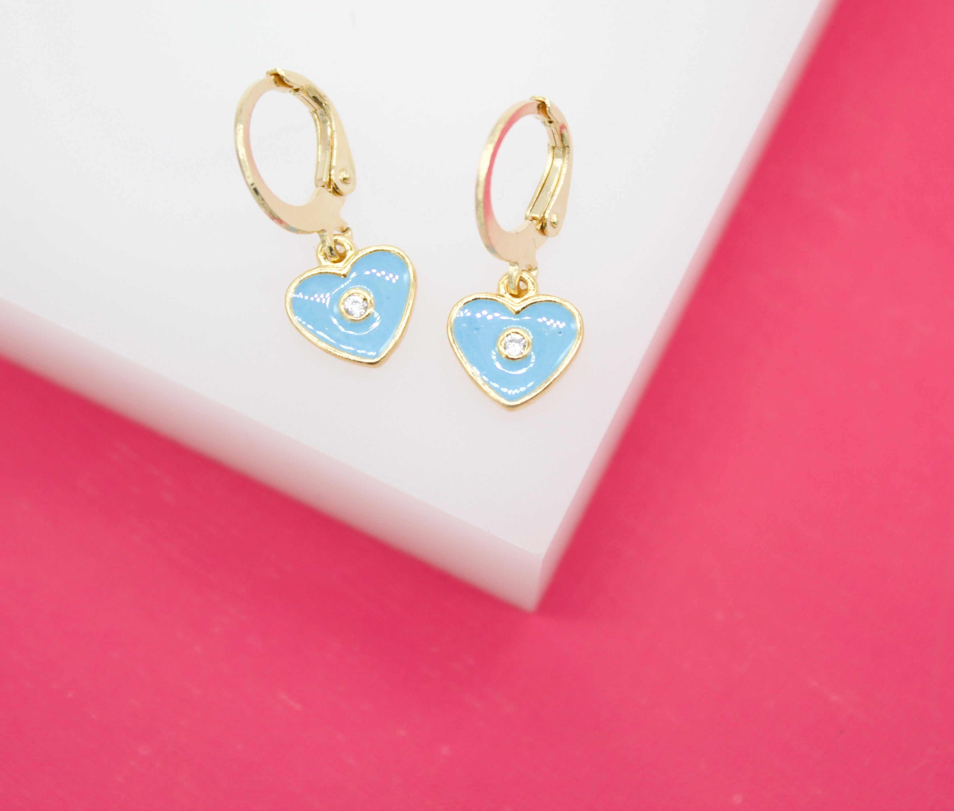 18K Gold Filled Heart Huggies Earrings With CZ Stone (L162)