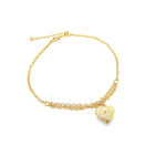 18K Gold Filled Heart Charm Anklet With A Round CZ Stone (E15)