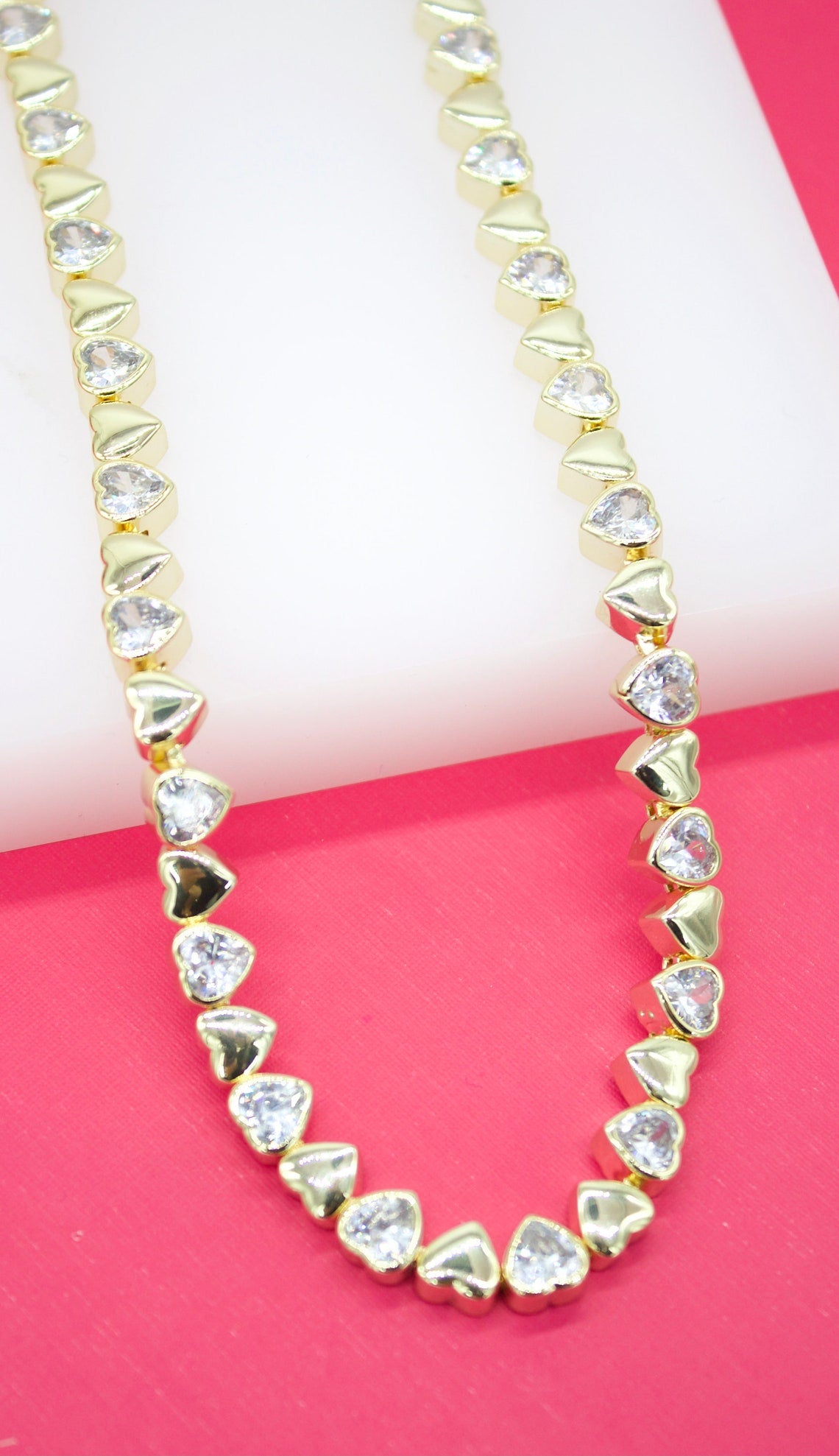 18K Gold Filled Heart Necklace With Heart CZ Stone (G79)