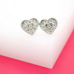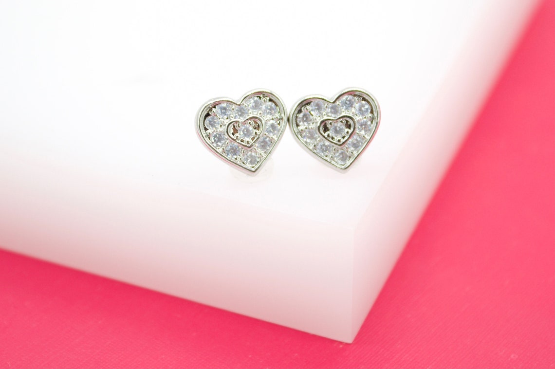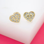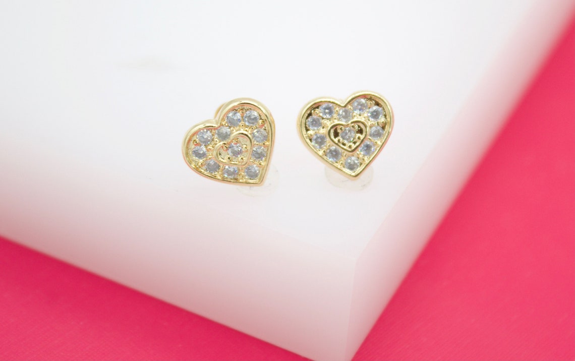 18K Gold Filled Heart Stud Earrings With Round CZ Stones (L98)