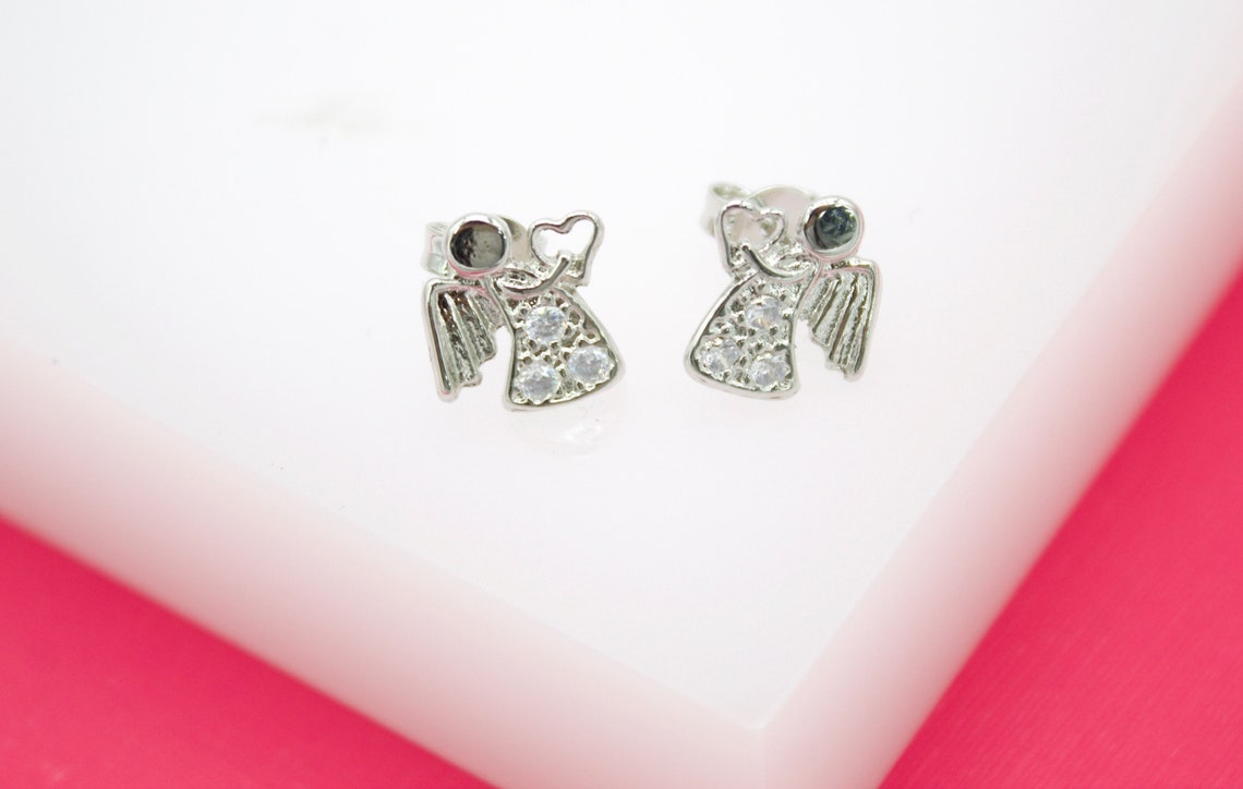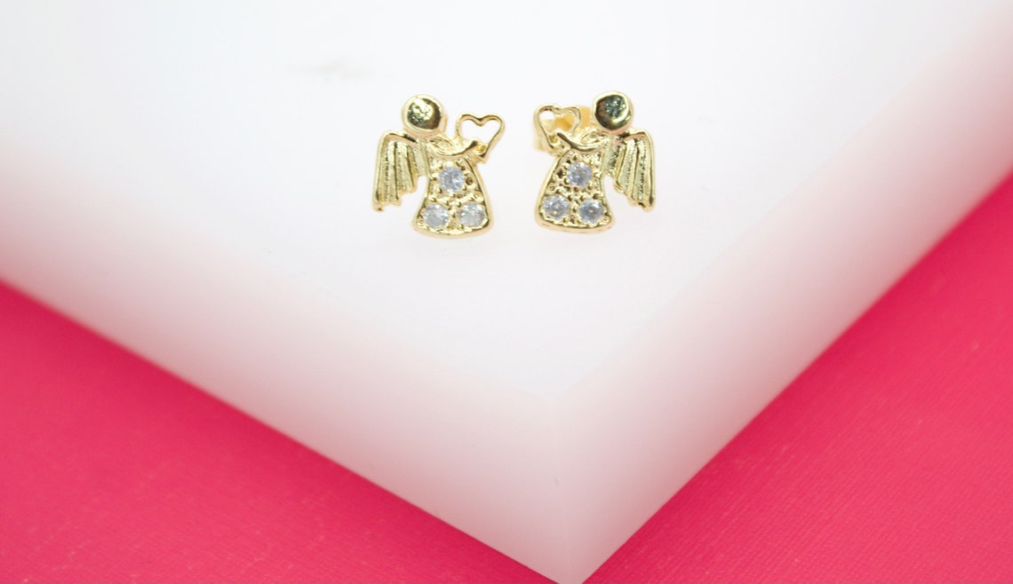 18K Gold Filled Love Angel Heart Earrings Studs (L102)