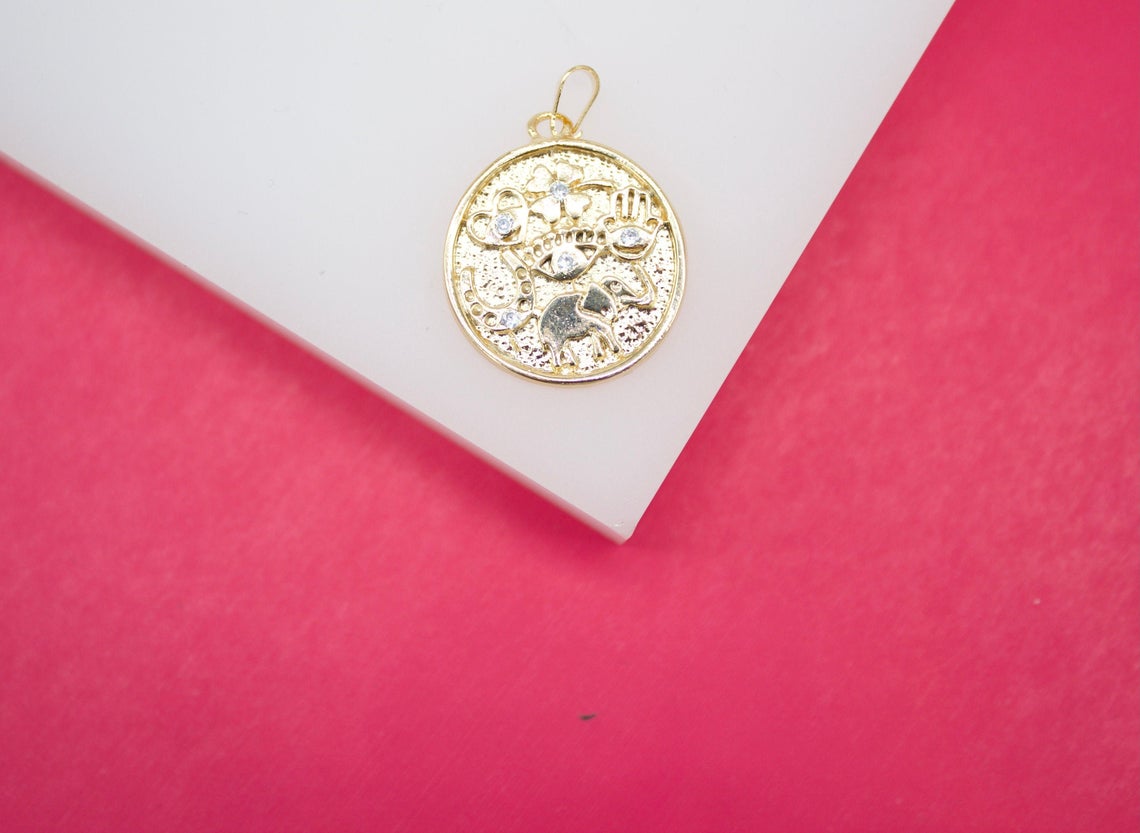 18K Gold Filled Lucky Elephant Hamsa Hand Heart Four Evil Eye With CZ Stones