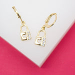 18K Gold Filled Pave Lock Heart French Lever Back Earrings (L160)