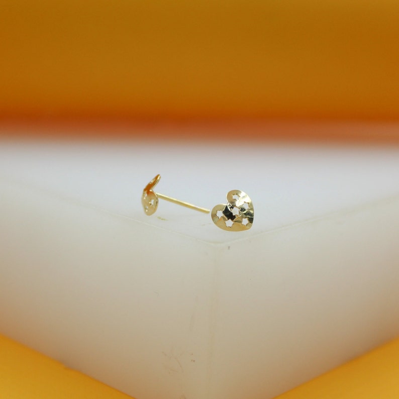 18K Gold Filled Star Cut Heart Stud Earrings (J148)