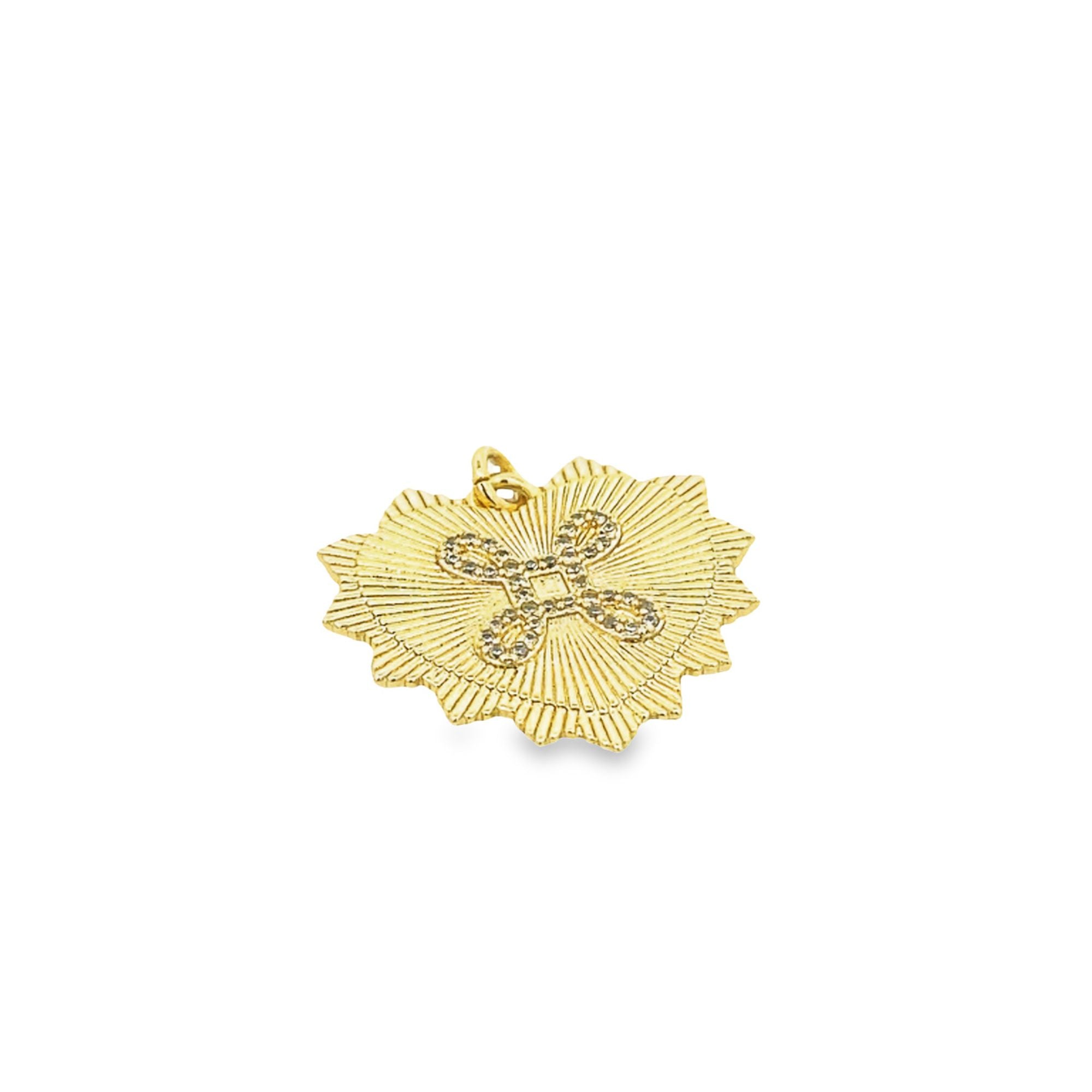18K Gold Filled Textured Sharp Radiant CZ Heart Pendant Charm (A301)