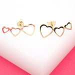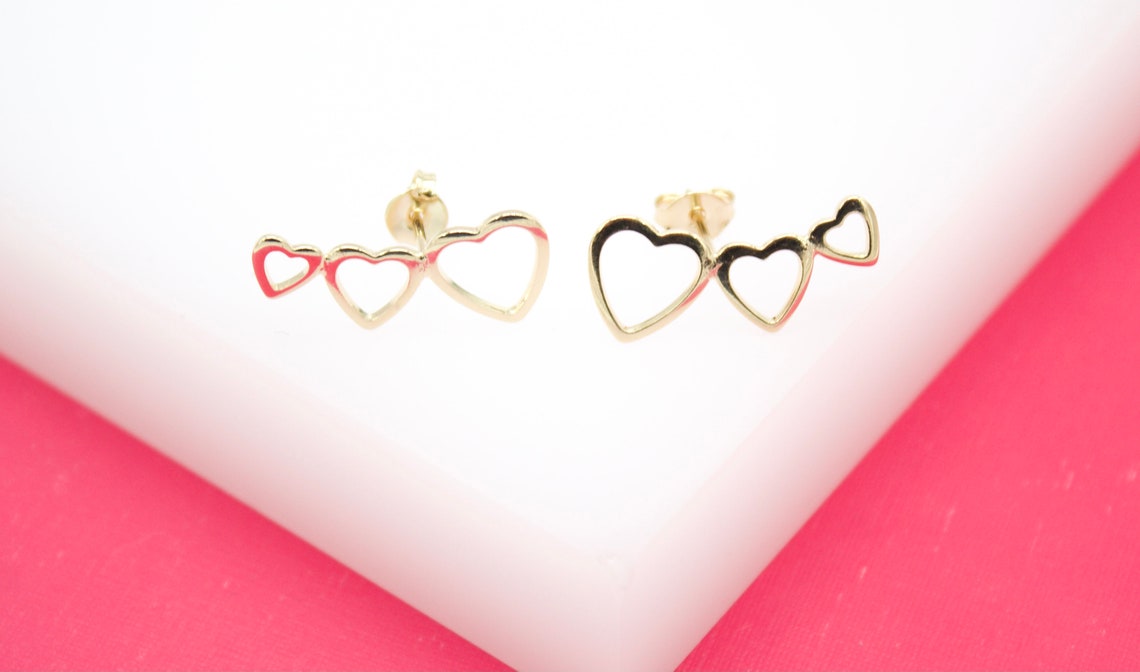 18K Gold Filled Triple Outlined Hearts Stud Earrings