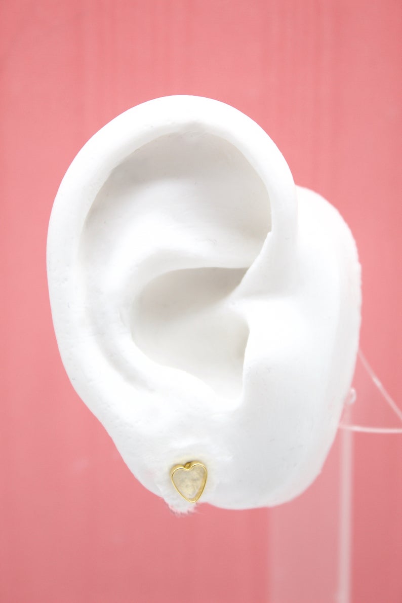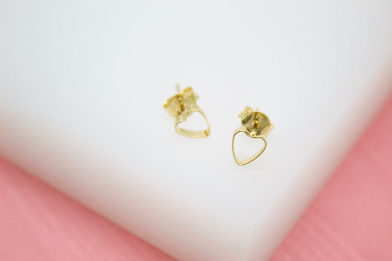 18K Gold Heart Outlined Filled Stud Earrings (L2)
