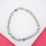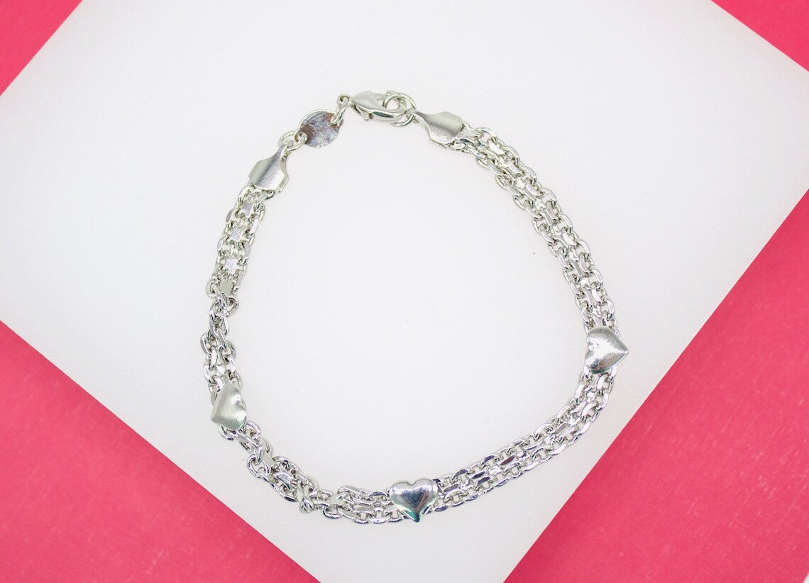18K Rhodium Filled Designed Double Clip Bracelet With Hearts