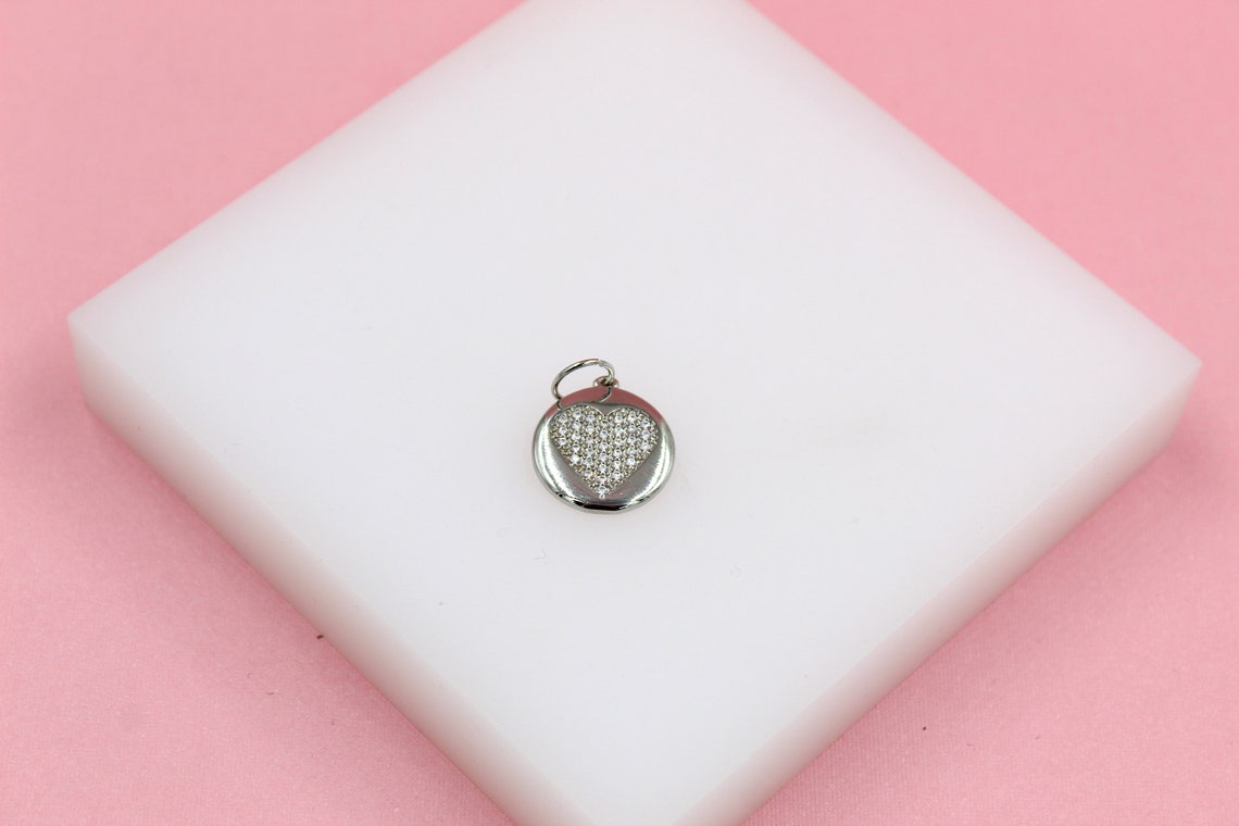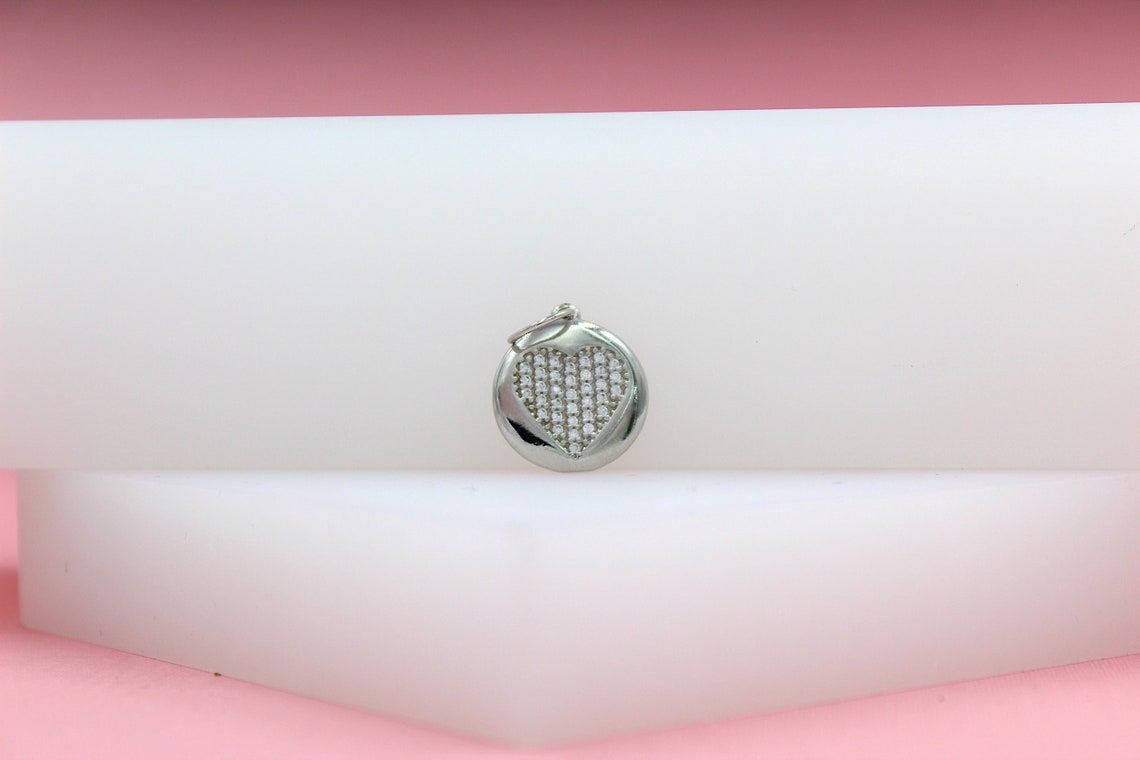 18K Rhodium Filled Heart Pendant Love Charm With CZ Stones