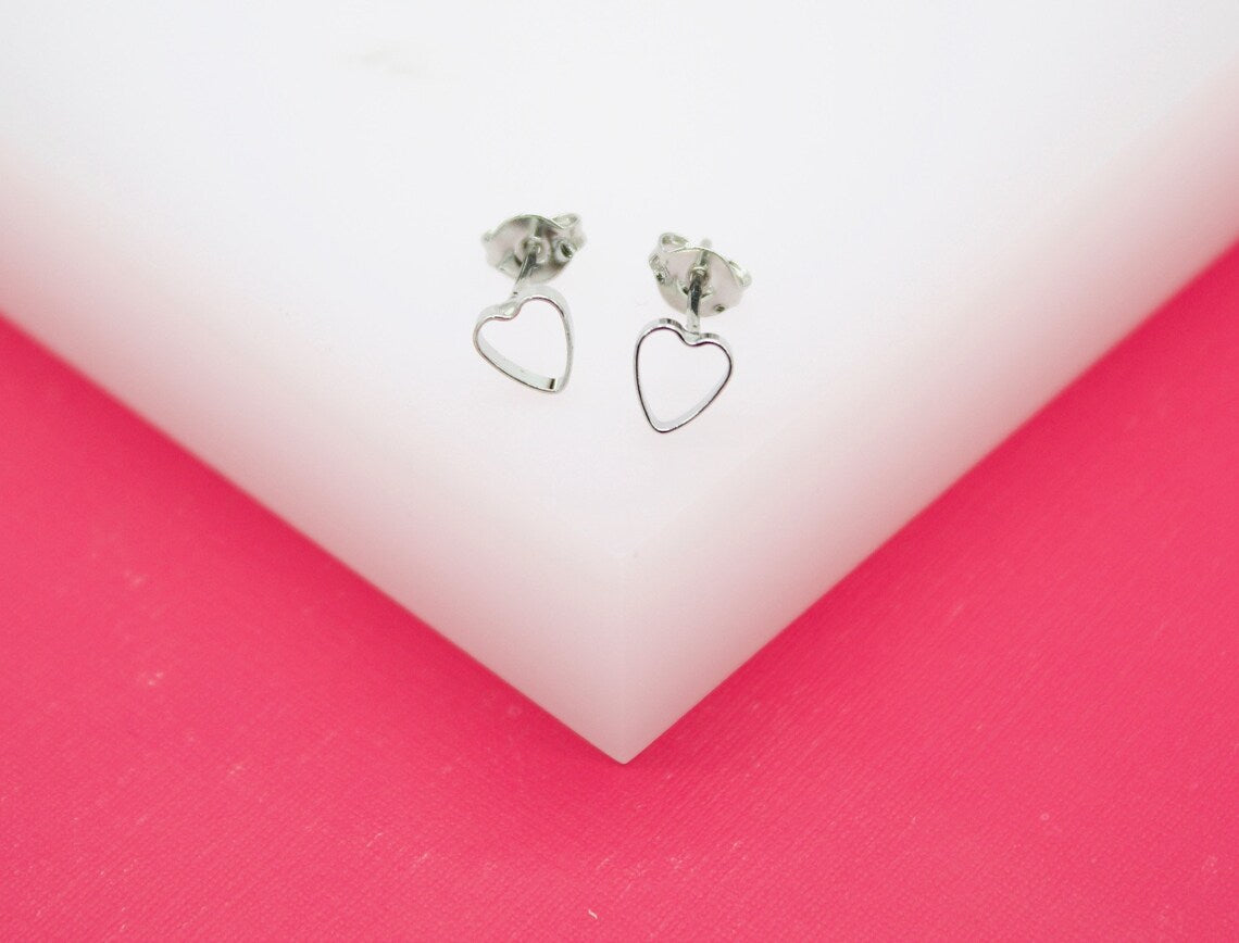 18K Rhodium Heart Outlined Filled Stud Earrings (L151-152)