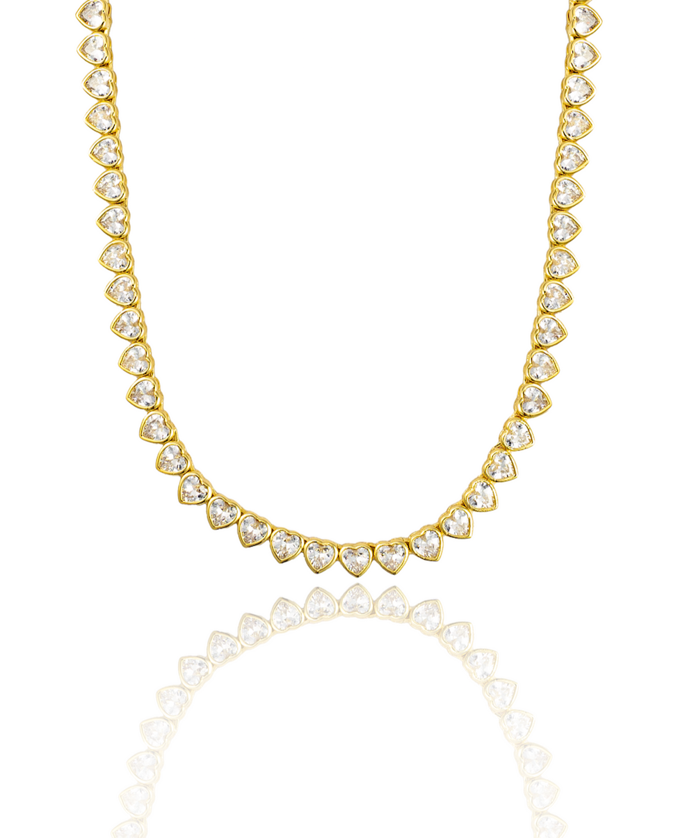 Indulge in the romantic elegance of our 5mm Heart Bezel CZ Tennis Bracelet. A dazzling display of round CZ stones, each heart-shaped bezel setting adds a touch of sophistication and charm. Perfect for any occasion, this bracelet is a true symbol of love and luxury.