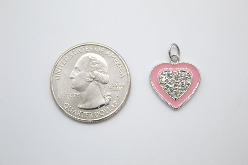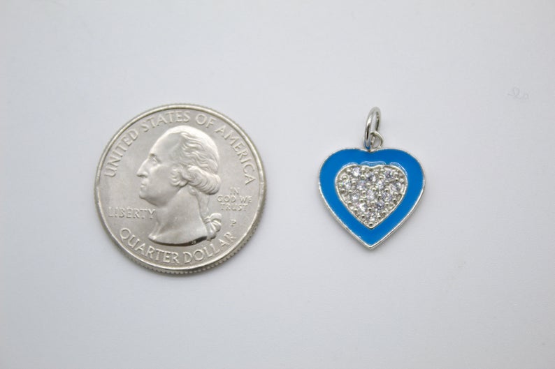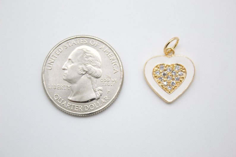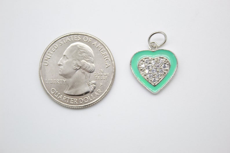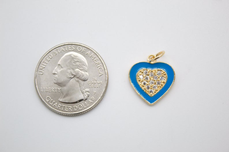 Dainty 18k Gold Fill Purple Blue Teal White Heart Charm CZ Micro Pave Heart