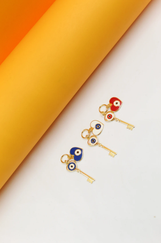 Gold Dainty Evil Eye Key & Heart Charm (A62A)