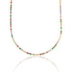 2mm Tennis Necklace Choker With Multicolor Round Clear Cubic Zirconia Stones (G209)