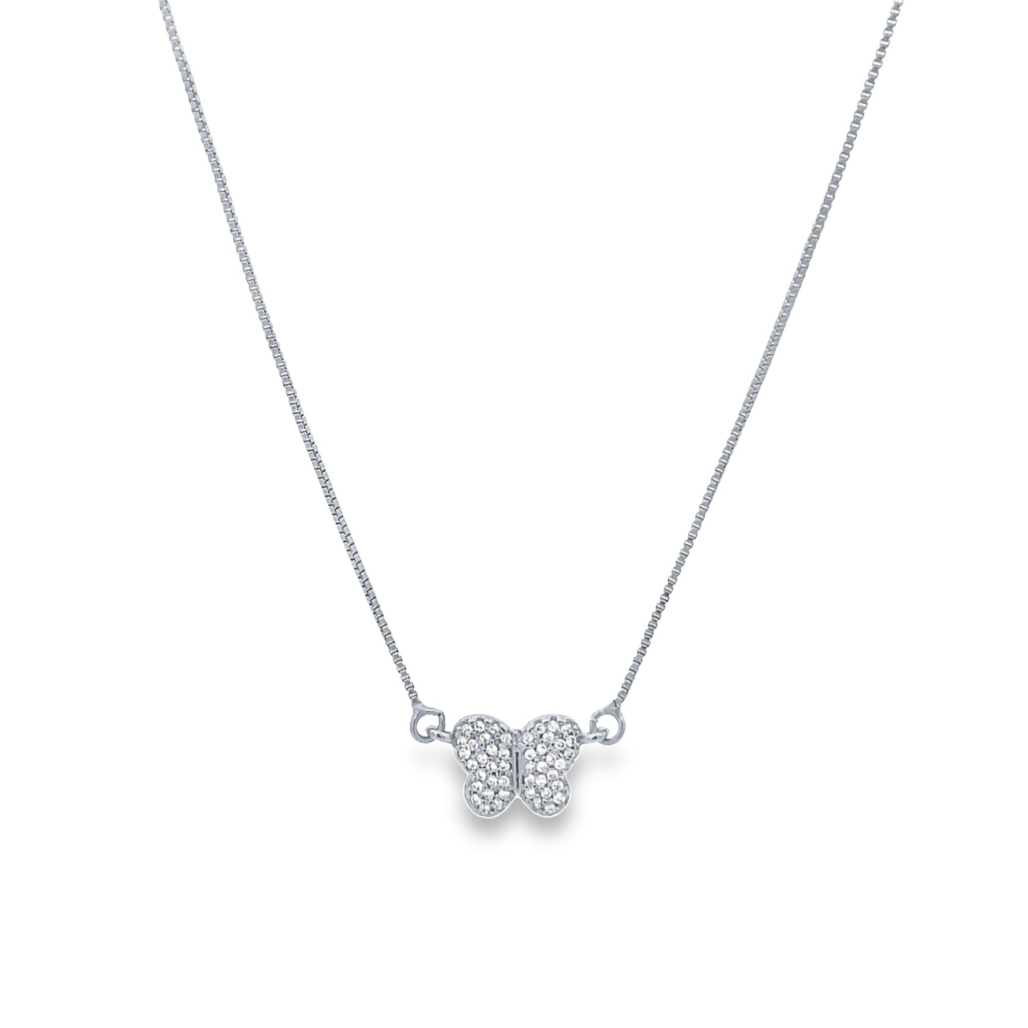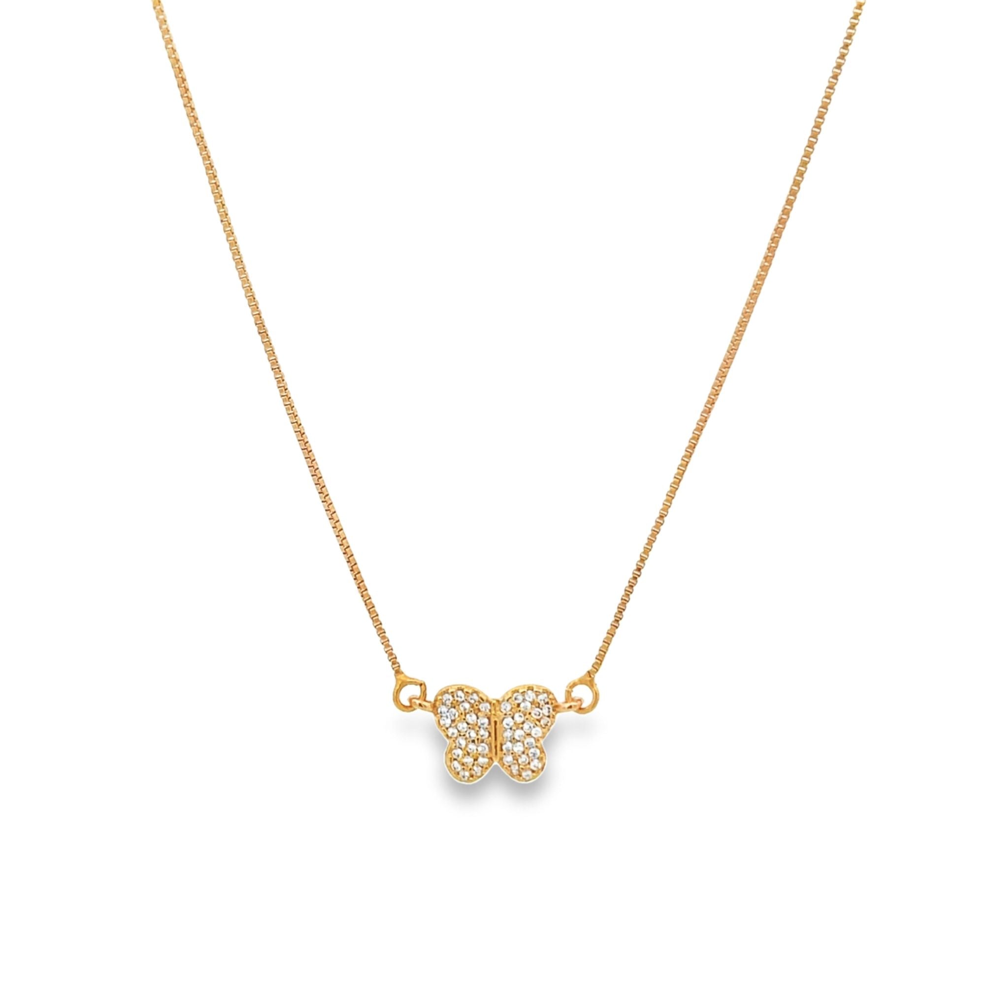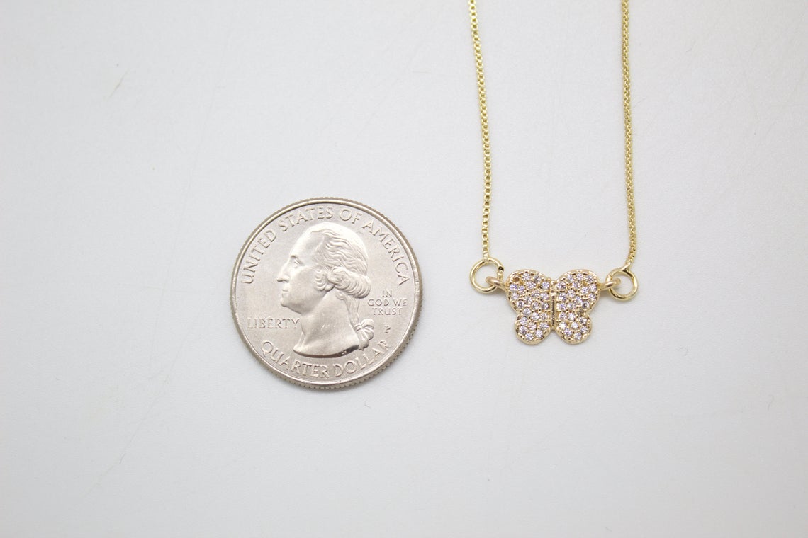 Dainty Box CZ Pave Butterfly Pendant Necklace (G134)