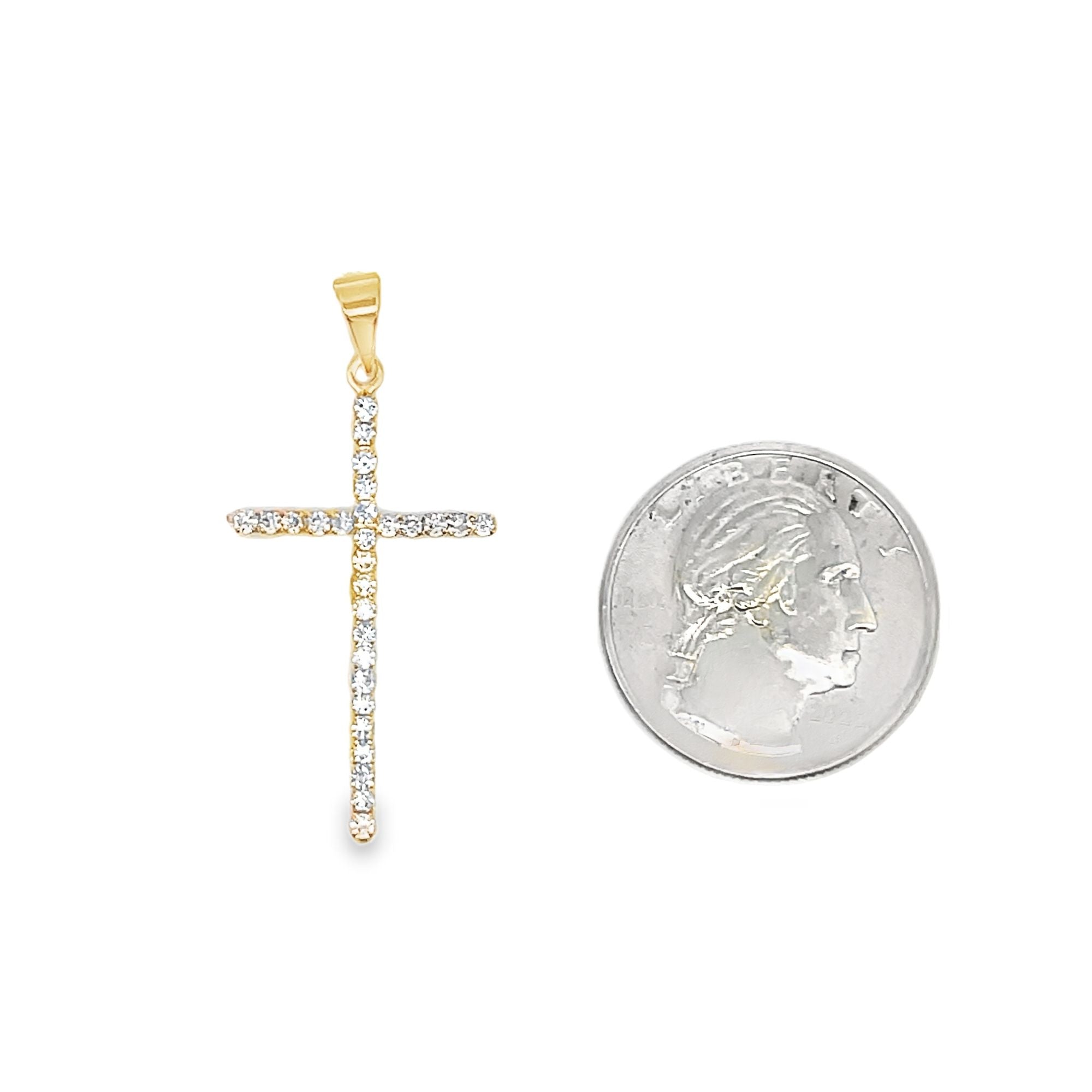 Elevate your faith with this Gold Filled Christian Crucifix Pendant. Featuring a detailed design and sparkling cubic zirconia stones, this pendant measures 50mm x 28mm.