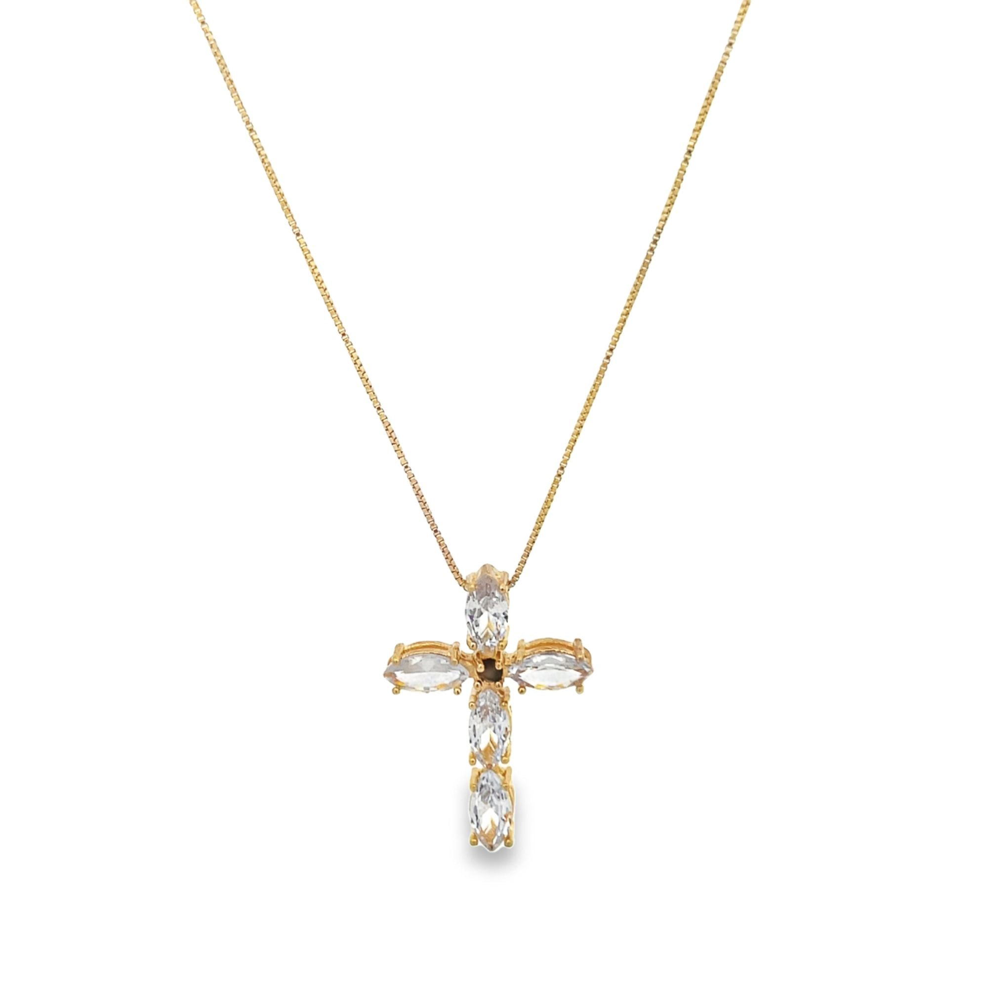Cross Crucifix Necklace With CZ Stones And Red Stone (G96)