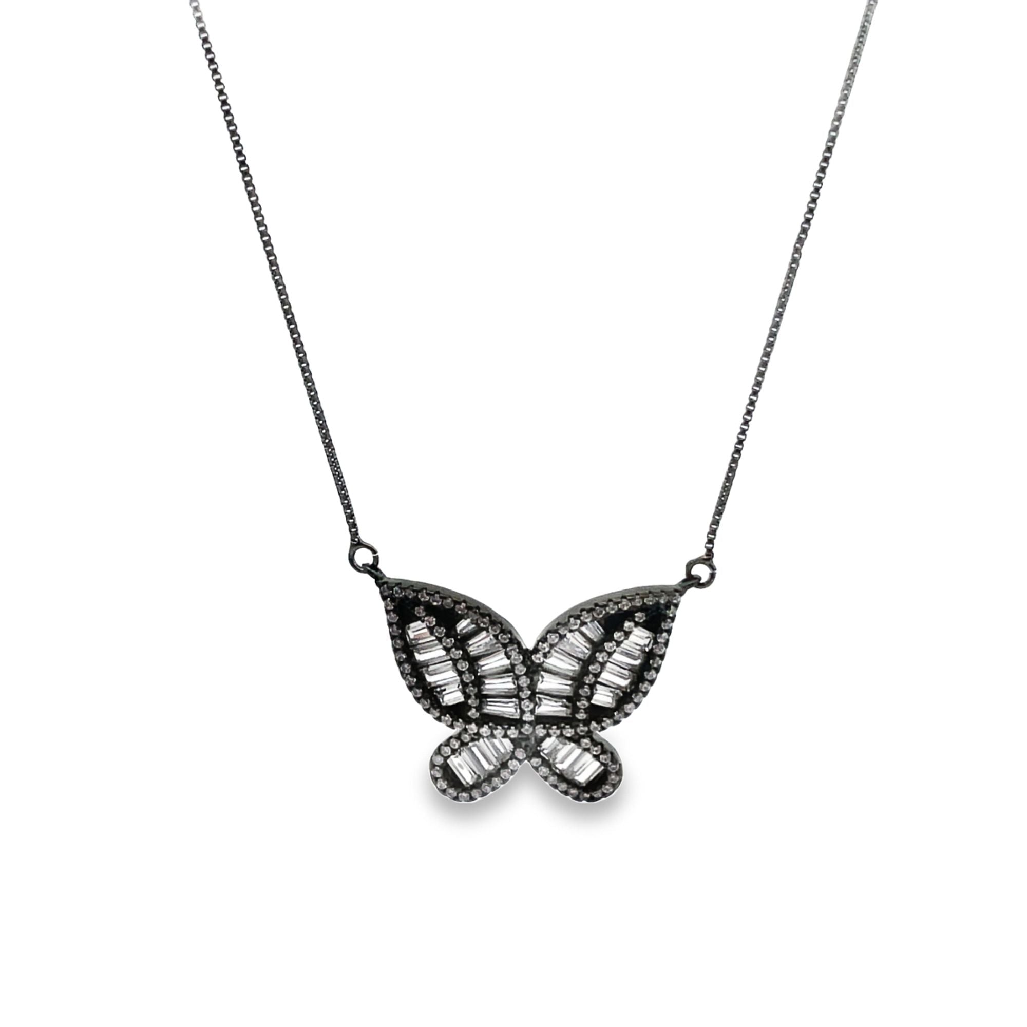 Dainty Box Chain CZ Baguette Butterfly Pendant Necklace (G132)