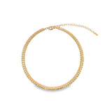 This CZ Paved Stone Choker exudes timeless elegance and luxury. Each stone is meticulously placed by expert craftsmen, creating a mesmerizing display of brilliance and sophistication. Elevate any outfit with this exquisite choker, a true statement piece that will make you feel like a work of art.