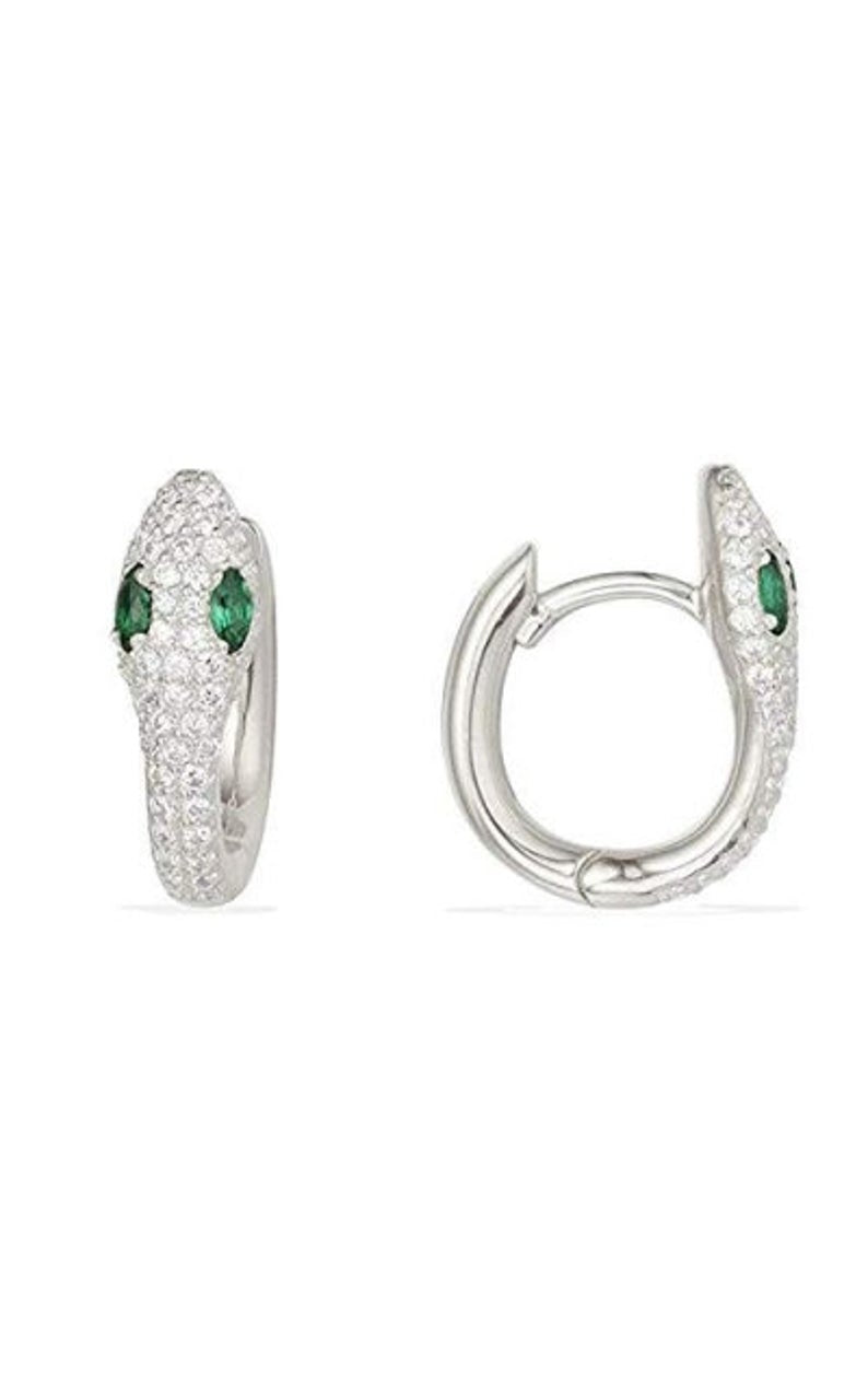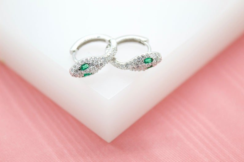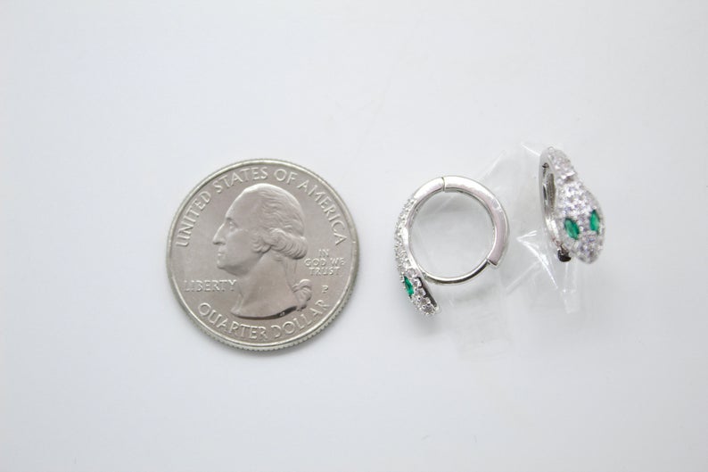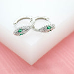 18K Gold Filled Snake Huggie Earrings With Green Eyes And CZ Zirconia Stones (L277)
